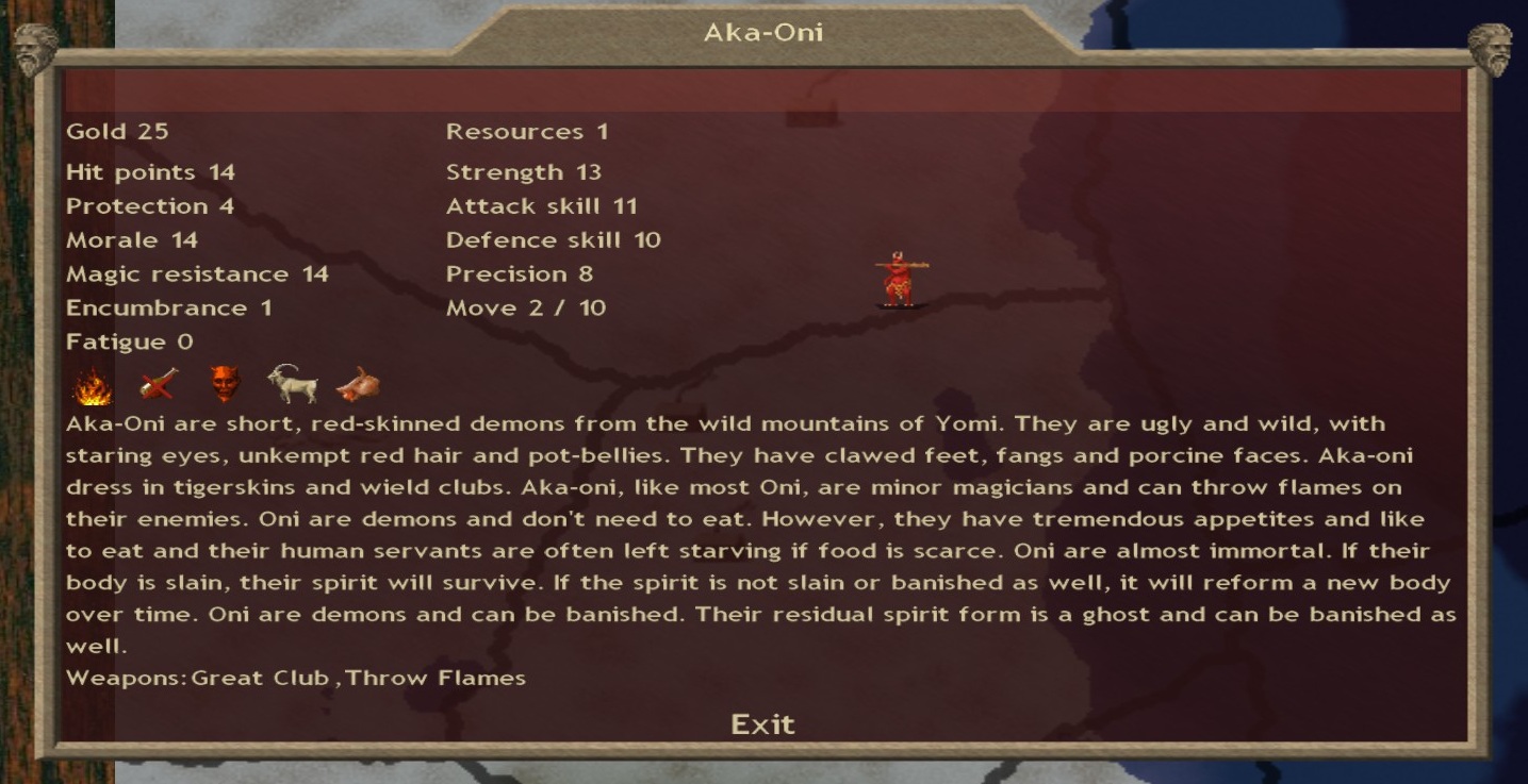 When the body of an Aka-Oni is killed, his spirit becomes corporeal for a time, continuing the fight. If this spirit is not destroyed, his body will eventually reform. This does not bode well for the Wolf Tribe archers, who see that their arrows are not doing anything at all. After only a few volleys, they take flight. The Wolf Tribe pledges themselves to Akenbei and the Yomi, and Histyra is conquered. More importantly, Akenbei has rediscovered his confidence.