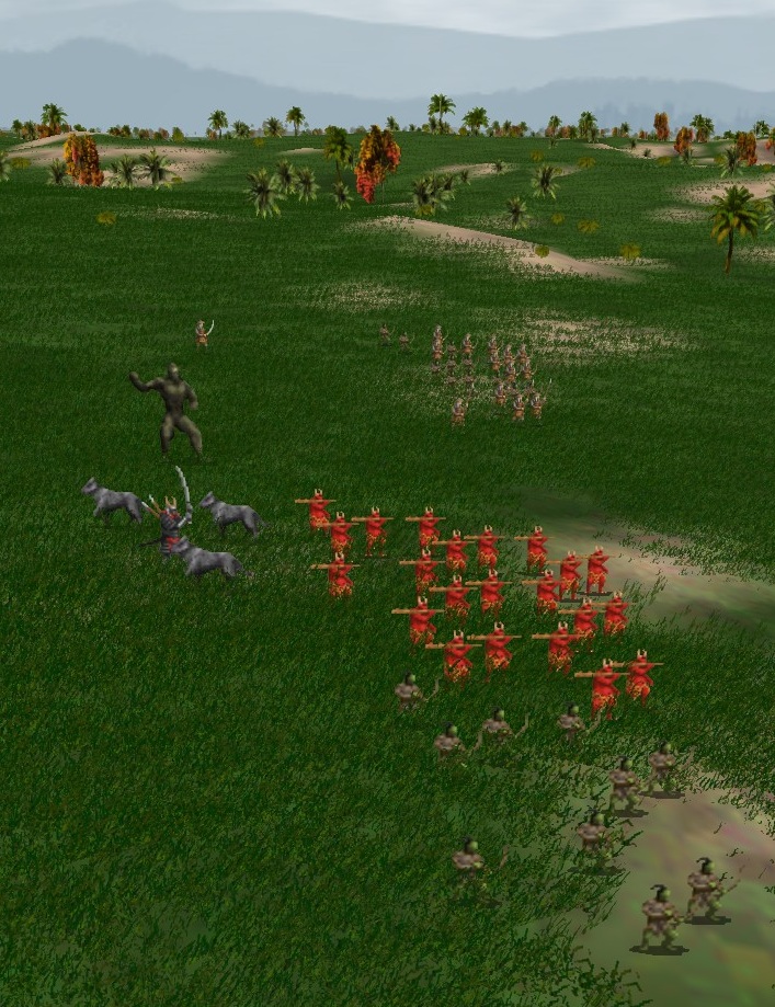 Akenbei is an imposing god. He stands fifteen feet tall, is gifted in earth and astral magic, and is a veritable battering ram of a warrior. He has marched north to the modestly wealthy independent state of Talito with a mind to expand his power. His army — more a band of ruffians at this point, but Akenbei reminds himself he is a patient god — is enthusiastic. How much trouble can the defensive forces of such a small state be, anyway?