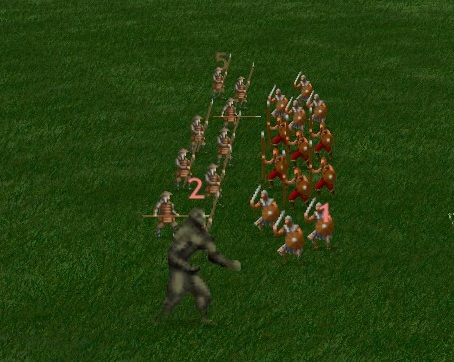 The battle kicks off poorly when Akenbei forgets to instruct his main core of bandit infantry to hold up while he casts Twist Fate to protect himself. Screaming their pretender’s praises, they rush forward with him thundering at their heels. Or so they believe. Right up to the point they crash into the line of Talito’s milita forces and are cut down in distressing numbers. Akenbei catches up and begins vetoing the enemy milita’s victory, but already his number of loyal bandits is thinned.