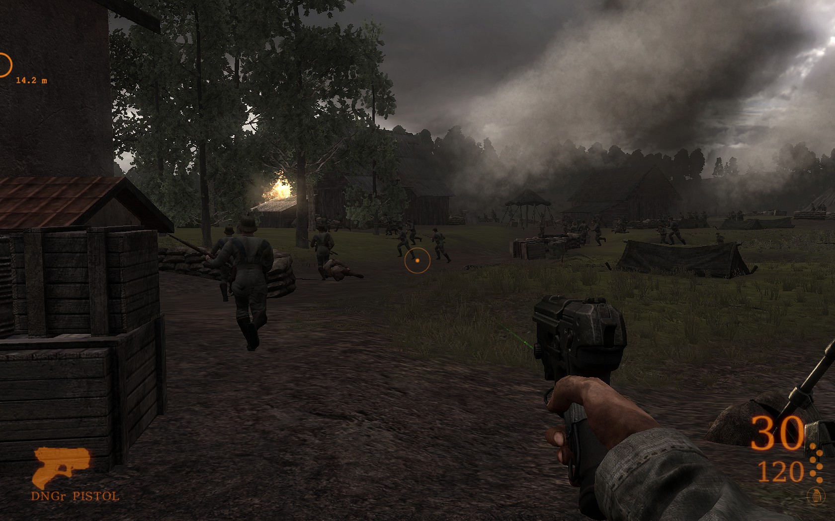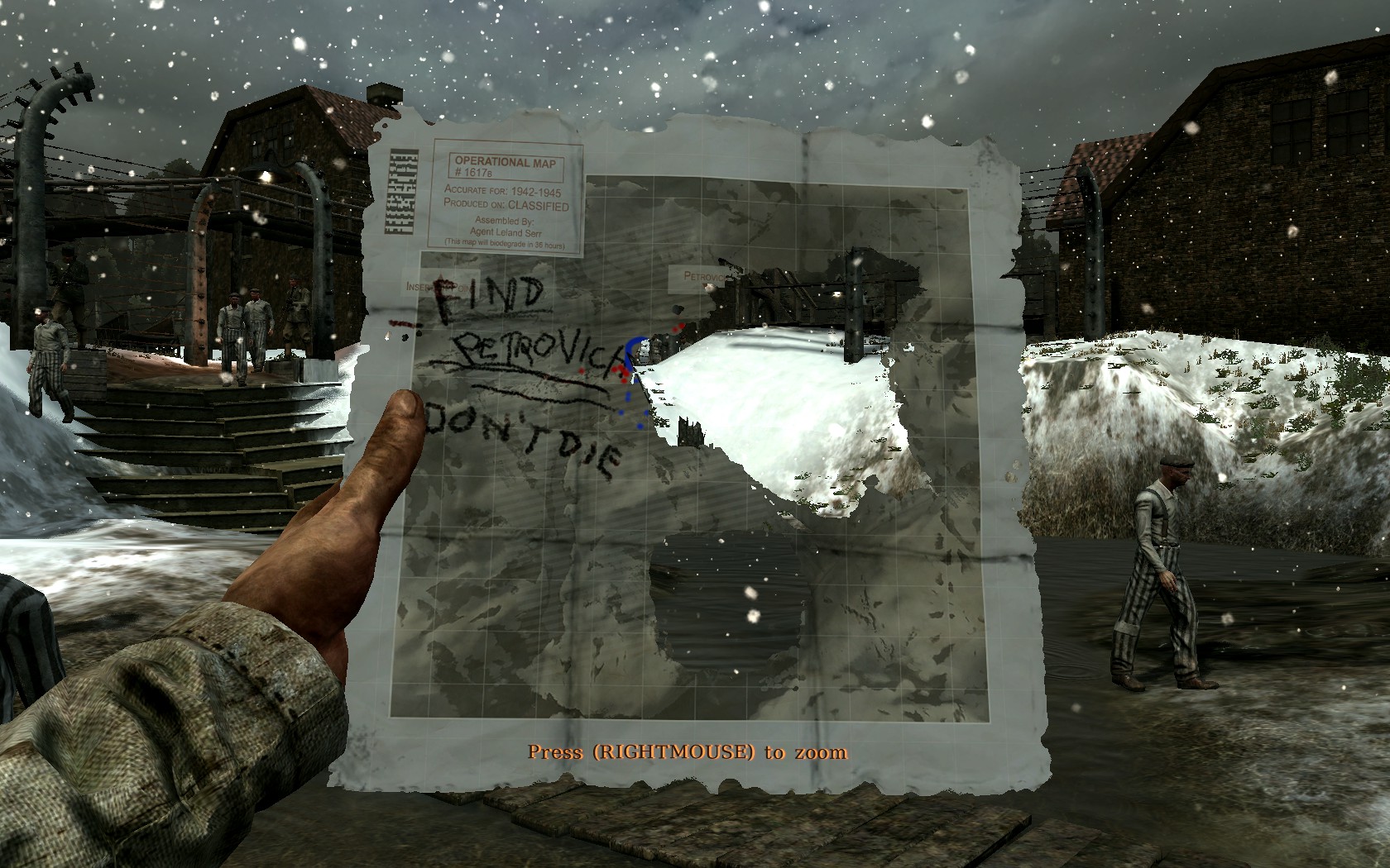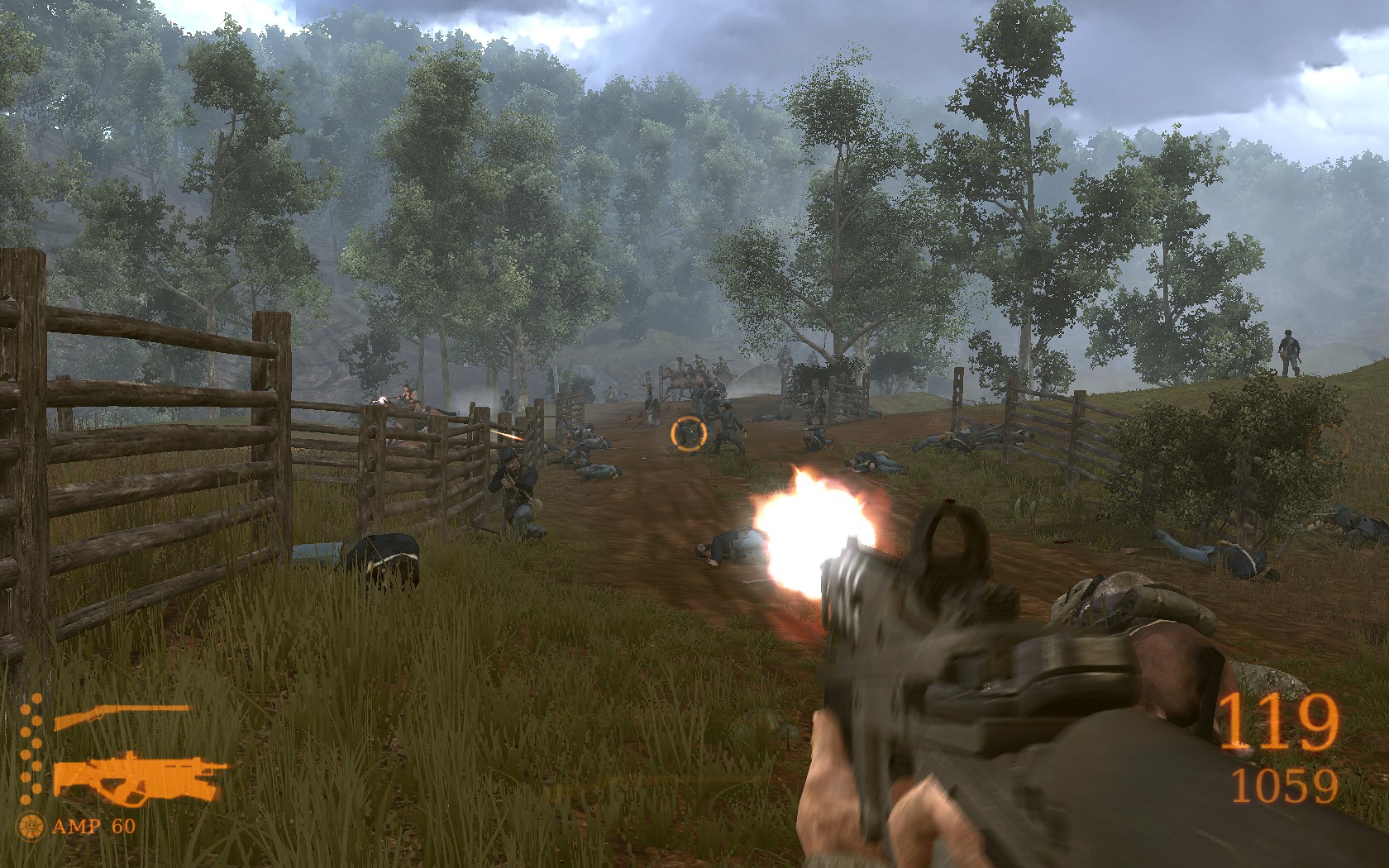 However, there are cracks. The narrative sways between good and evil varieties of camp, trending from joyous romp to eye-rolling far too often. Most of the time you go back in time equipped with period weaponry and given modern implements later, but once you’re armed with a futuristic homing assault rifle, nobody seems to notice that you’ve just won the Civil War in fifteen minutes of horrific slaughter. Fair enough, but after gloriously turning back hundreds of charging Germans with a grenade-mortar on full-auto, going back to muskets and revolvers for the next mission is all the more disappointing. Enemies can see through the same foliage that regularly impedes your vision, and more than once I instinctively took cover behind tall grass, cornstalks, or bushes only to be gunned down by a half-dozen musketballs. And some of the missions are simply dull, especially in comparison to the ones that are tightly-scripted looks at some of history’s bloodiest fights.