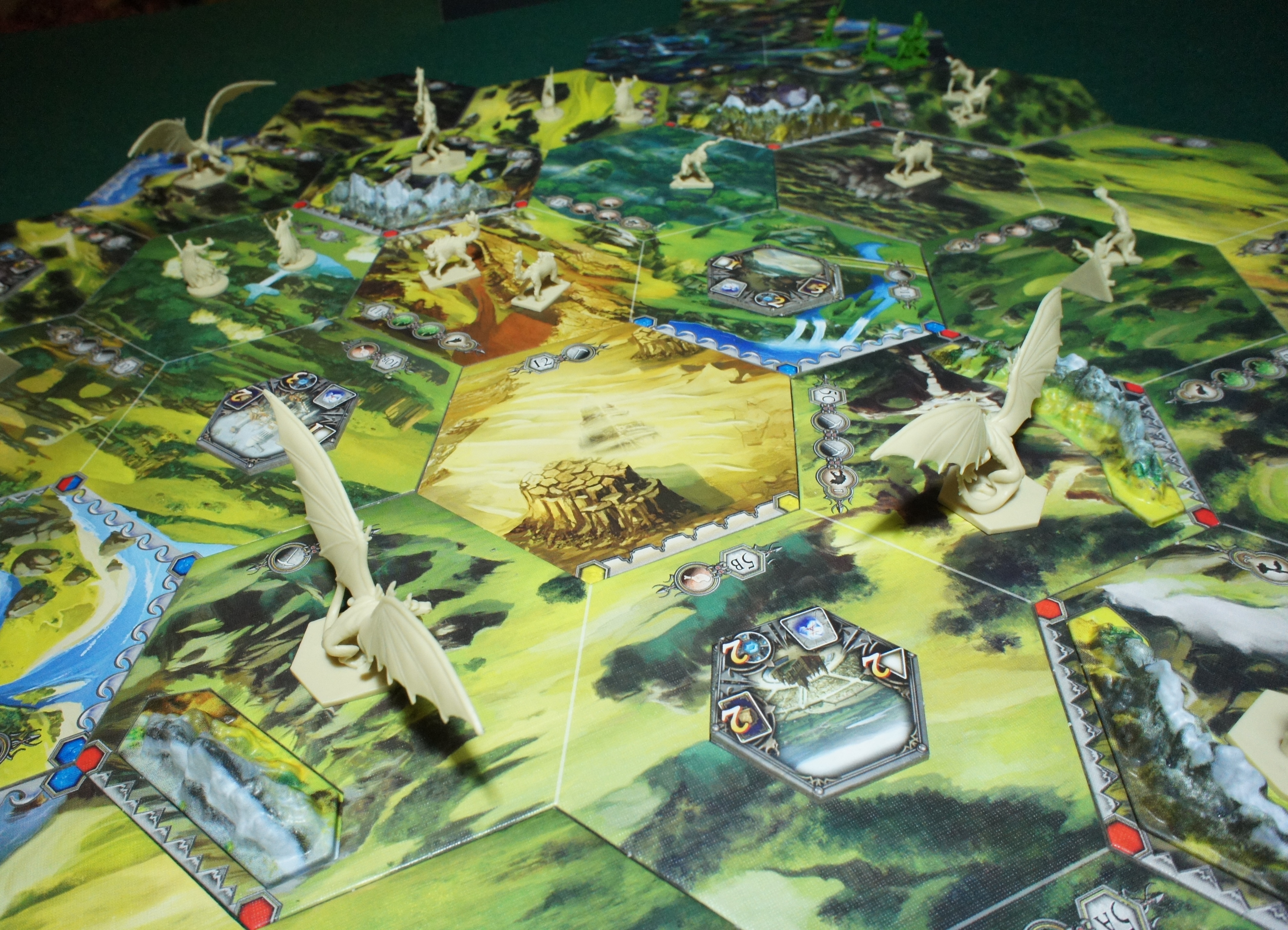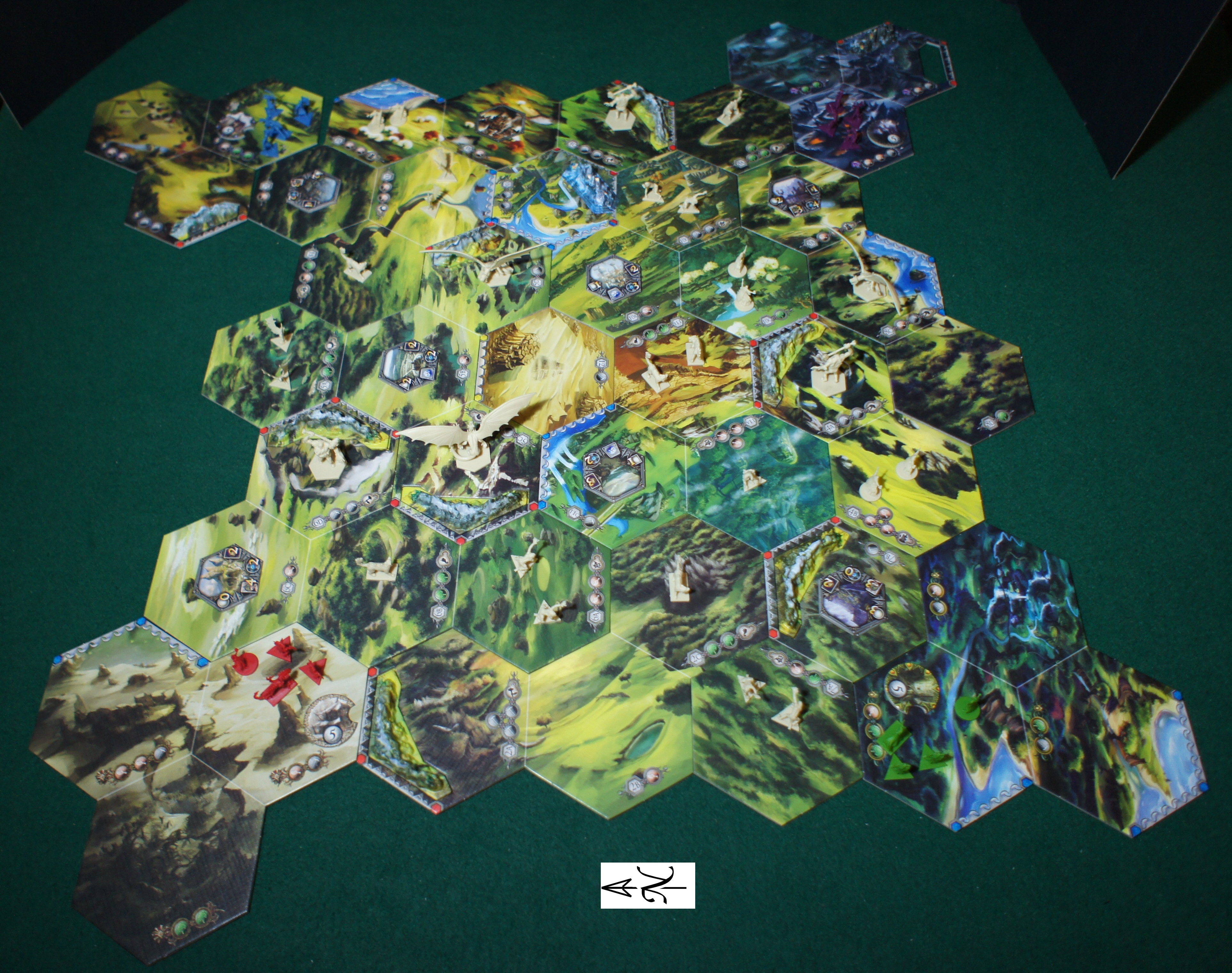 The map of Terrinoth that we will be using. North is to the left. The four factions begin at the four corners.