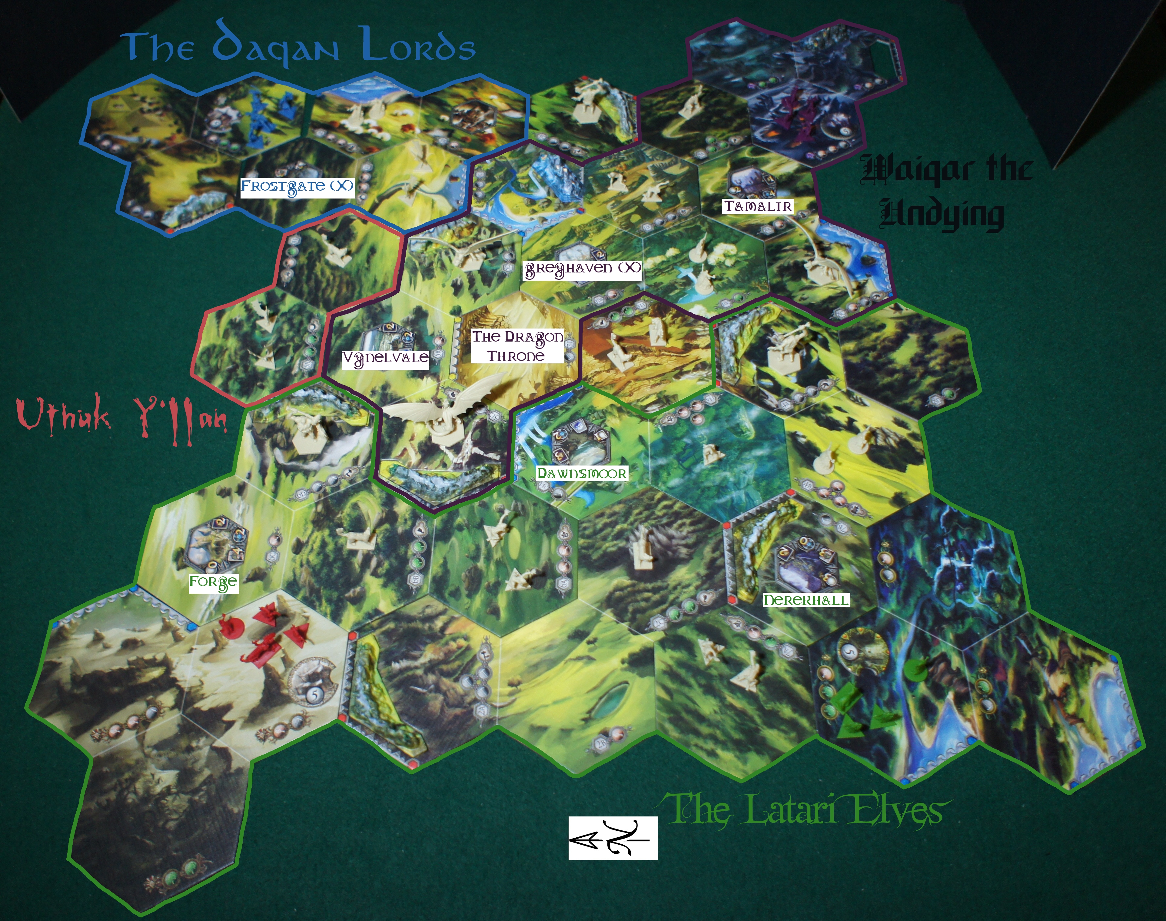 After a sluggish year, Vyrah the Falconer was ready to secure Latari dominance once and for all. They already controlled nearly half of Terrinoth, and the only force approaching their power was Waiqar. In the south, he began to prepare the Latari armies for a conflict that would make the war with the Uthuk barbarians seem like a minor skirmish. All the while, he was aware that Mad Carthos was making similar preparations.