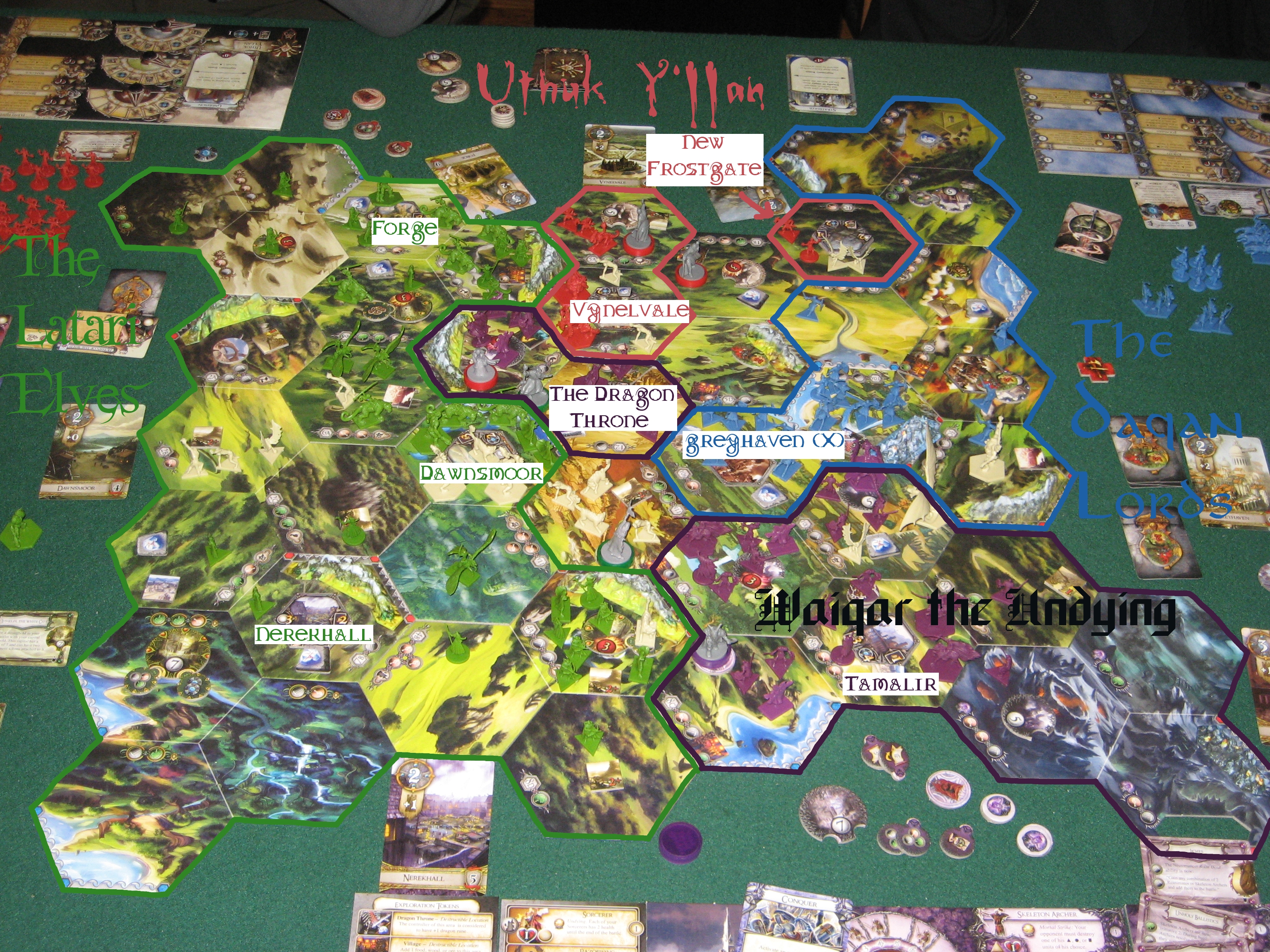 As the slow sixth year of the War came to an end, each of the four nations found their ranks swelling with volunteers (well, “volunteers” is a loaded term in Waiqar’s army). Hedge-prophets and scrying witches claimed that the coming conflict would dwarf the combined bloodshed of the last six years, and that as winter fell on the eighth year, a new lord would be seated on the Dragon Throne and Terrinoth would have its king.