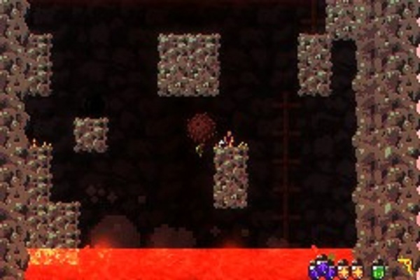 For a game that’s so simple, TowerClimb sure has a lot of variety. Even though I’ve only been through the first few chambers, I’ve seen a huge number of different dangers and challenges. I’ve not only out-clambered tides of lava and flown through the air on steerable balloon-plants, but also swam through shark-infested lakes and hidden from flying monstrosities. I’ve blasted new paths to avoid swarms of enemies, gone out of my way to unlock glimmering treasure chests, traversed quadruply-dangerous alternate back passages, and performed dizzying acrobatics to find safer routes. The early chambers rely a bit too much on sleeping dogs and scurrying rats, but after a couple more levels it’s common to see a healthy mix of threats. This sort of thing is probably the most important point that I’ll make here, since it transforms the game from a competent platformer into something that I plan to return to for quite some time.