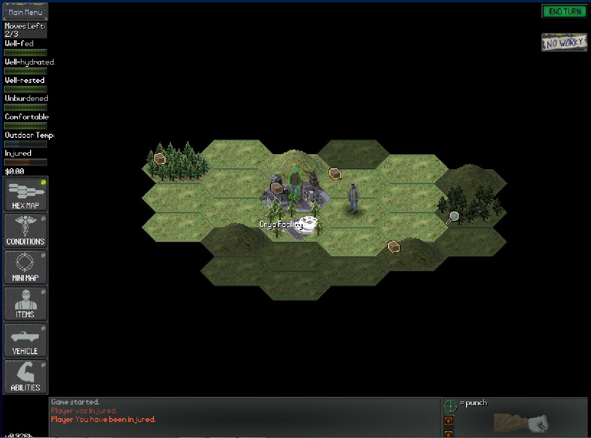 Of course, this isn’t totally unique. The first Fallout and the S.T.A.L.K.E.R. games (always a pain to type out) presented truly affected and dangerous terrain. Somehow, NEO Scavenger manages to feel realer than even those formidable examples. As the game begins, you have no quest but to survive, no inventory other than a plastic wrist strap, a necklace, and a hospital gown. You don’t even have any means for carrying items that you find except your own two hands. Has there ever been a game in which finding a plastic shopping bag to carry some kindling and a few packets of ketchup counts as an early victory?