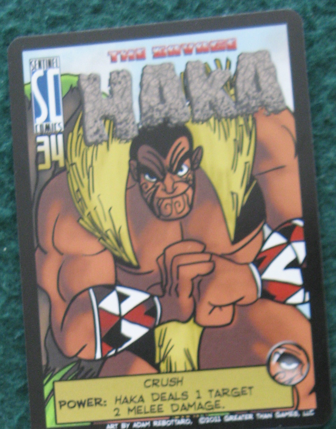 The final hero in our lineup is the former Chief Aata Wakarewarewa, transformed into Haka by mysterious tribal forces when he was betrayed and murdered by a rival chieftain! (SC #30) His Craigslist advert claims he now fights crime to gain eventual redemption, and that’s good enough for Absolute Zero.