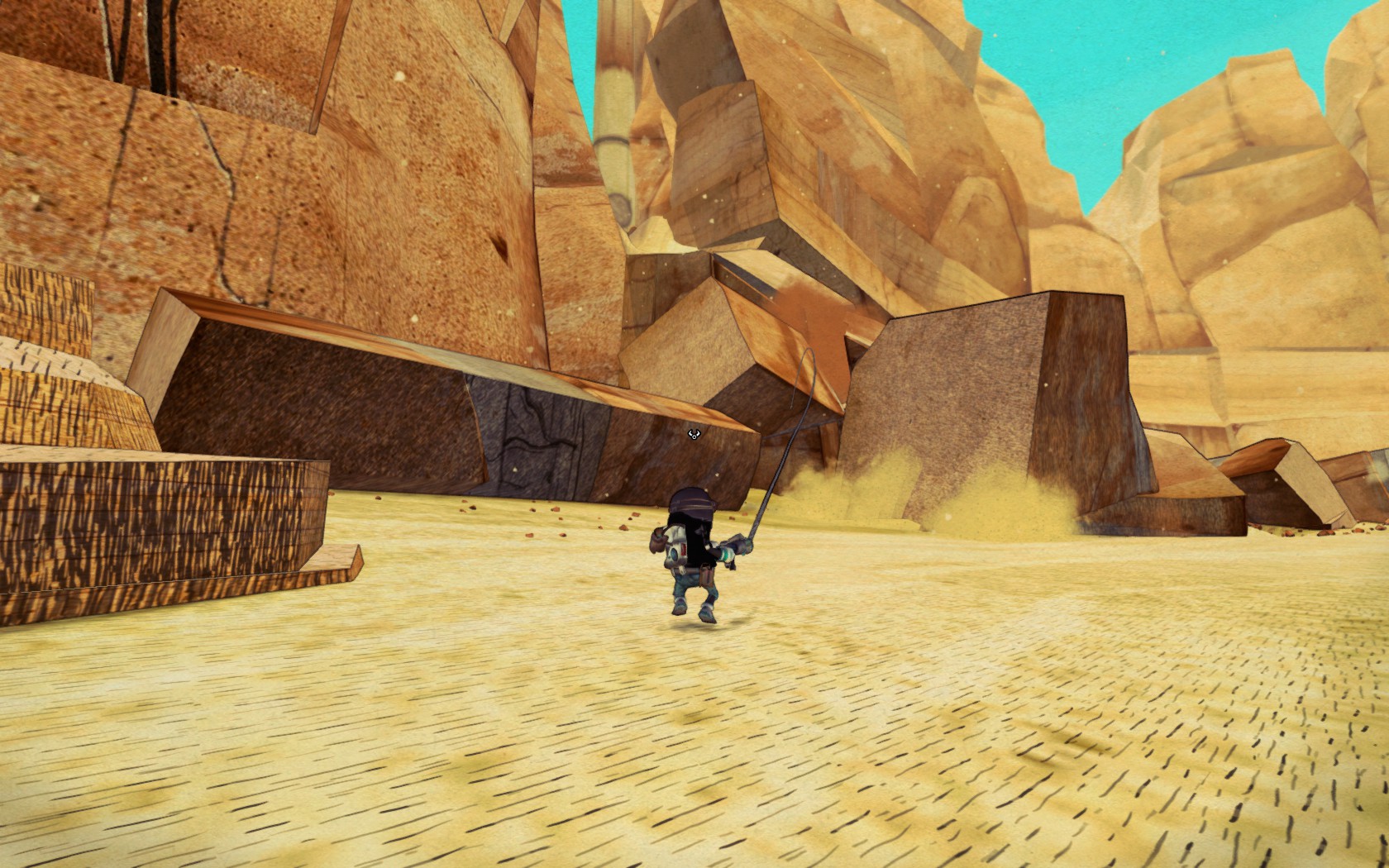 Tiny and Big has a similar act change, but it comes only a little ways into the game—it starts on level three of six (the levels are pretty huge), so you end up spending over half of the game fighting against dangerous powers that want to rub you out. By this point, I was still figuring out the optimal way to use Tiny’s tools, and I would have preferred a few more open levels to just play around in before things got serious. As it stands, I was having boulders hurled at me before I really knew how to use all my tools effectively, and as a result, much of the joy of exploration was abandoned, since I spent more time playing in fear of being killed and losing my progress to a misplaced checkpoint. T&B does manage to recover a good portion of its fun, but really, one more large open level would have been much appreciated.