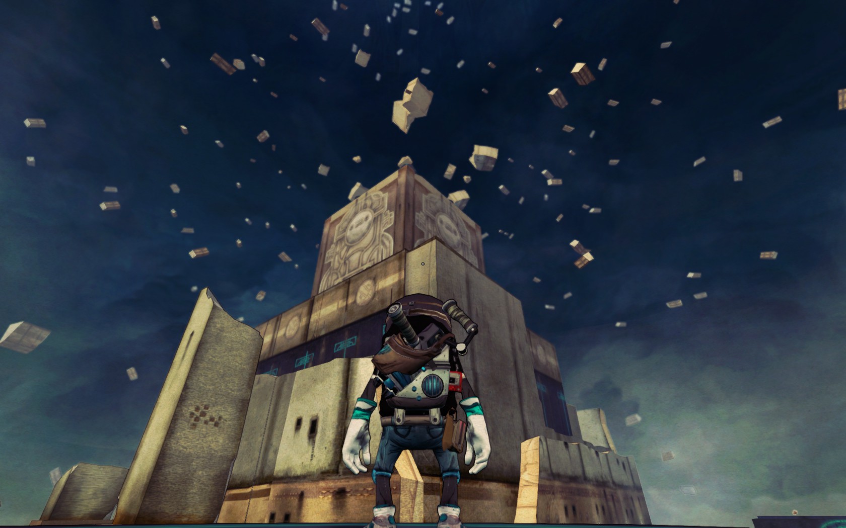 Saying that T&B is all about this tool is like saying that Portal is just about the portal gun. The interaction between these tools and the environment may be the primary means of play, and without them there wouldn’t be any game; but still, both games use these tools as the basis to create something far more unified than a mere series of levels built around terrain puzzles. So even though I spent three hours using Tiny’s equipment (nope, not any better) to move from point A to point B, I still wouldn’t say that the game was about that equipment.