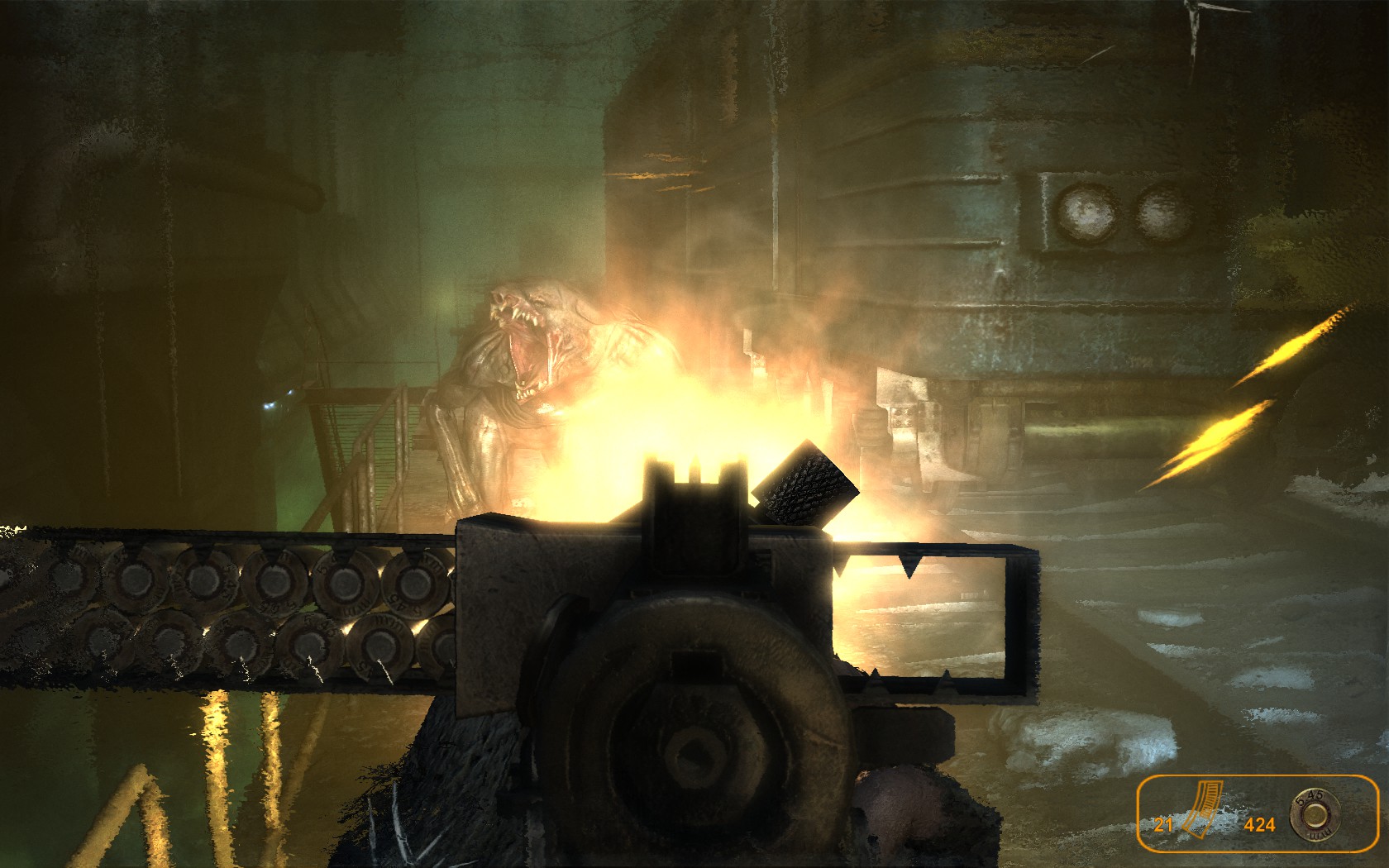 You’d have to hand in your gamer card if you didn’t expect an attack to land at some point during this journey: you’ve been given guns and ammo, told that the journey should be safe, and then at the last minute told that the main line that’s patrolled and well-lit is under repairs, diverting your railcar down a side passage that your driver finds creepy, but has traveled before—even just a month earlier—and arrived safely. The whole thing just screams ambush.