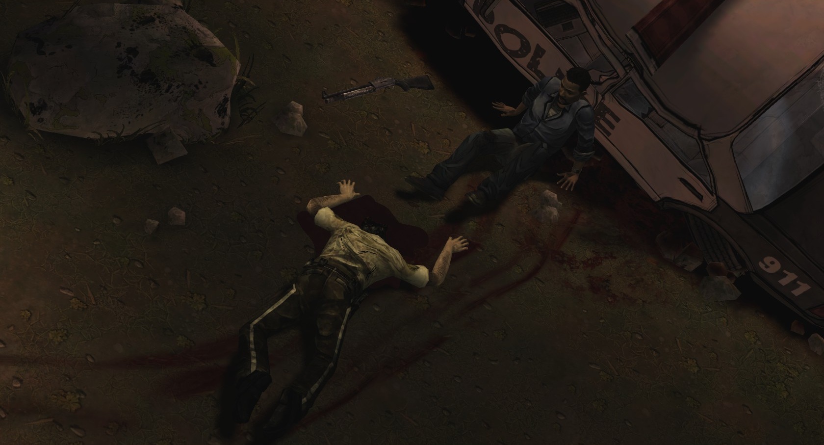 After we crashed into someone stumbling through the street, I awoke to find that my leg was badly hurt and the dead were walking. Again, I had to do something I wasn’t proud of, and soon enough I was stumbling through the woods, hoping to escape the modest horde that had accumulated upon hearing me re-kill that police officer.
