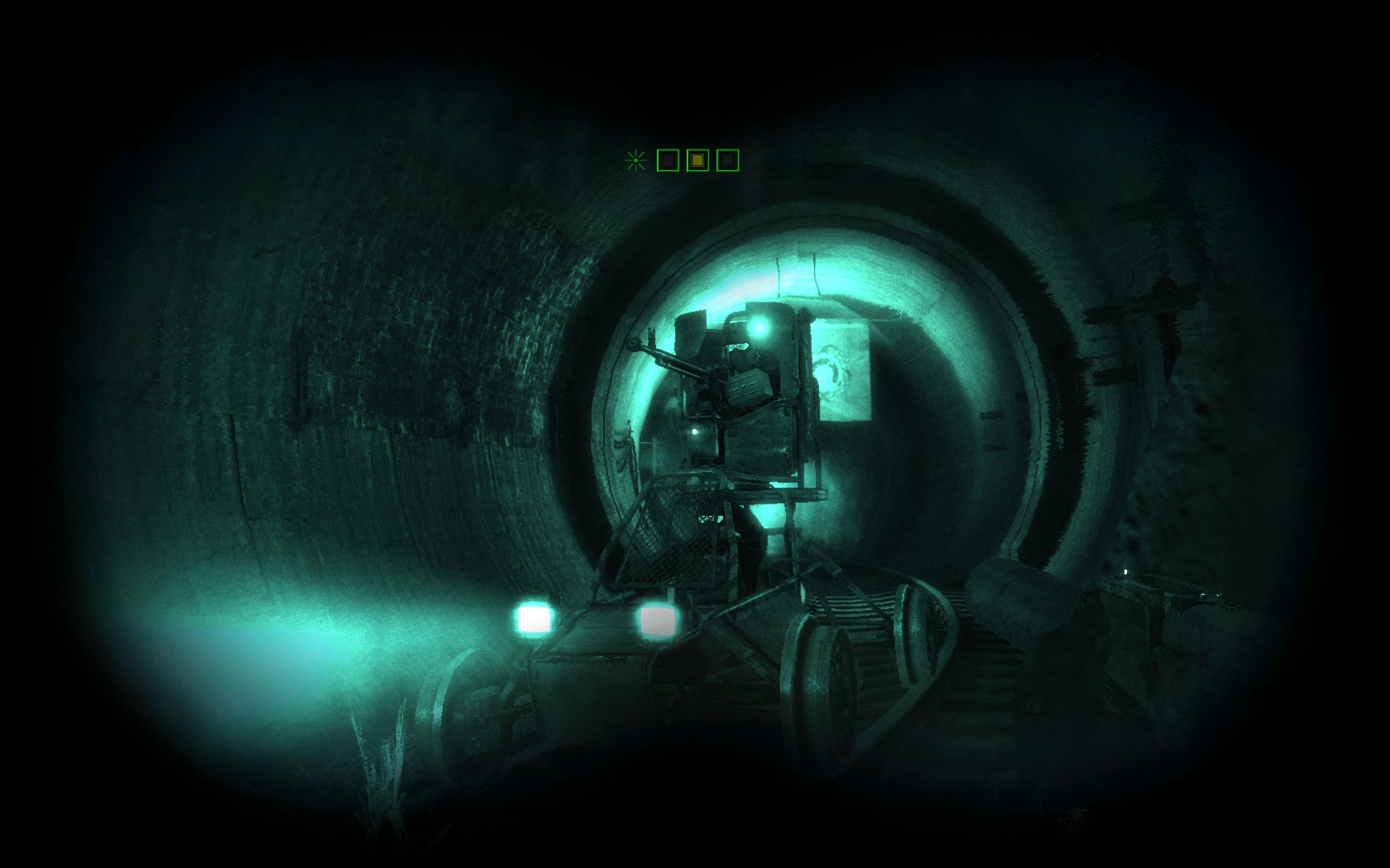 In Metro 2033, there is a morality meter. It isn’t visible, and it doesn’t act the way other games may have trained you to understand. It doesn’t affect your standing with anyone—that is to say, when you kill a Nazi, you don’t get +3 to your relations with the Communists and -2 with the Fascists. Instead, the game quietly takes note of the actions you take, then moves on. It does tell you that something has happened, but it’s such a subtle signal—a brief flash and a sound like a drop of water in a cavernous pool or a sharp intake of breath—that it’s easy to miss, or misconstrue as a mere visual effect. In effect, the game makes it easy to act as though you aren’t being judged. Kind of like real life, where there’s no immediate feedback when you shoplift a Snicker’s bar.