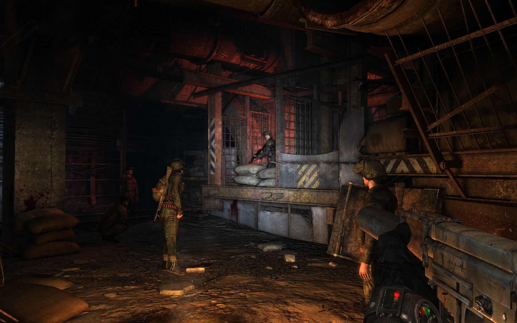 When you left Khan, he told you to go to Armory Station to meet Andrew, who would help you on towards the capital of Polis. Things don’t go as well as you’d like, as it turns out that the Communist faction has taken control of Armory, and you soon find yourself running for your life from very grumpy commissars. You’re saved by Andrew, who informs you that the fastest way to Polis is through the front lines where the Communists and Nazis are hashing out their differences with bullets and bayonets. Artyom stows away on a railcar filled with Communist “volunteers,” and soon finds himself on the periphery of a massive firefight.