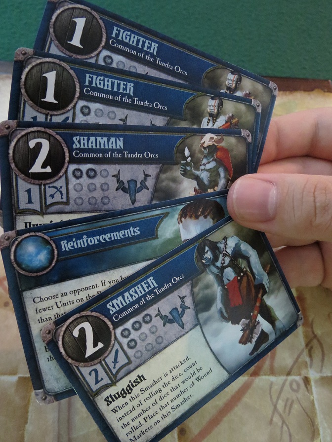 Good job! Yeah, it’s hard for me to think of an instance when I *wouldn’t* build that entire hand. Maybe if I were fighting the Cave Goblins I’d keep the Reinforcements card, just because I’d have a good chance of being outnumbered soon.