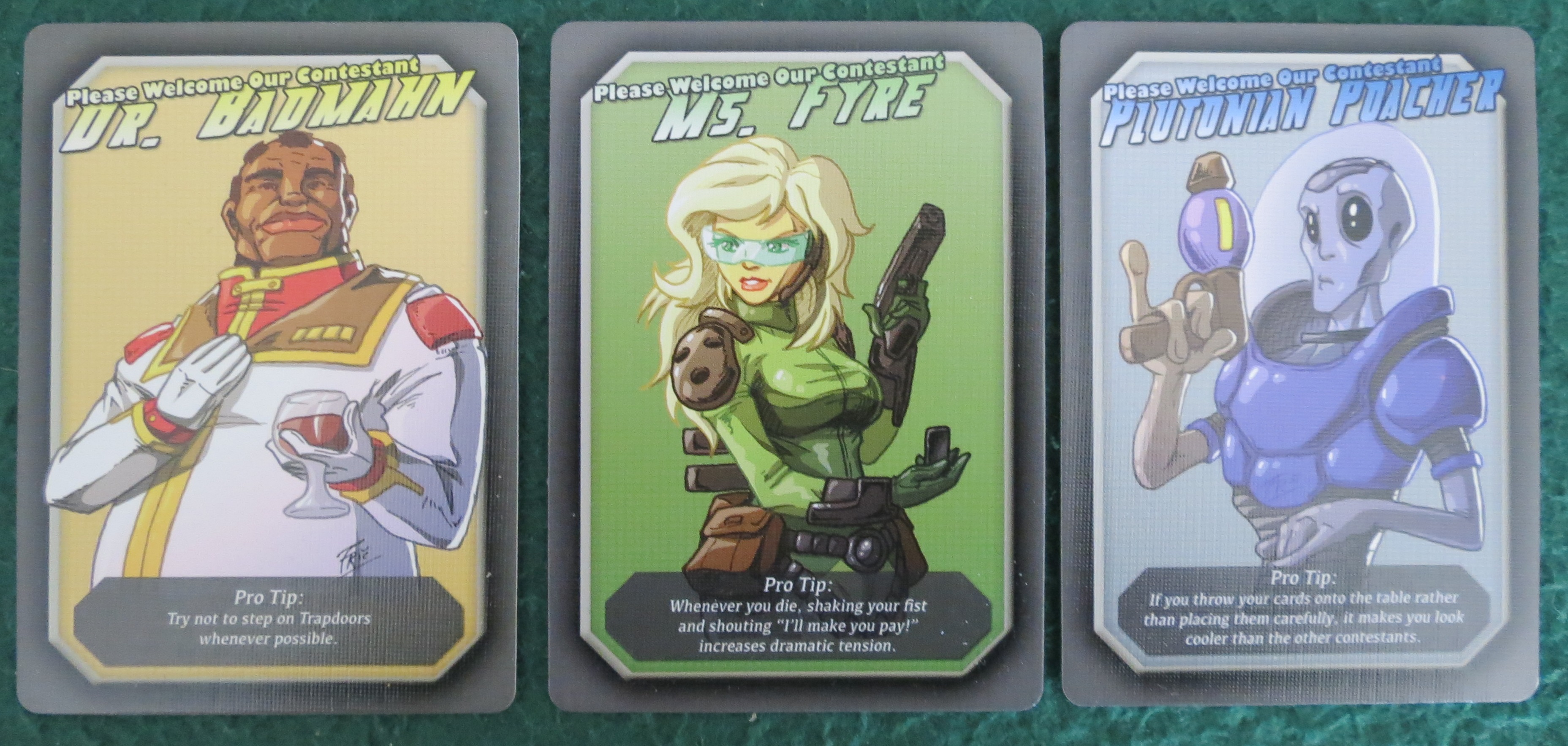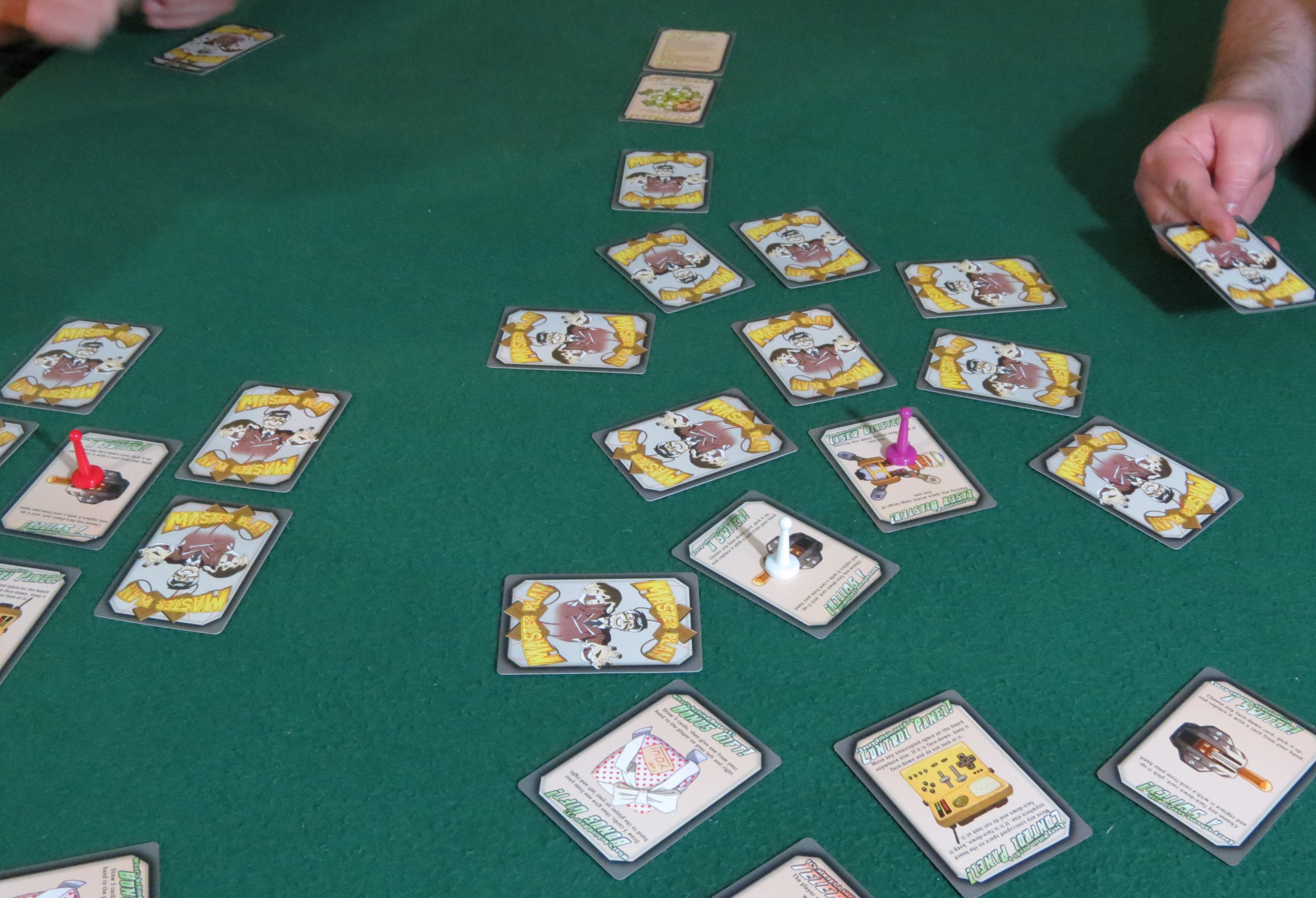 We’ll start with the minor ones. First, its fun quotient is scaled directly to how many players you can bring to it. Four to six players make for the best experience, while playing with only two or three is a bit dull — with so few, it’s a very real possibility that someone will win by actually reaching the cash instead of being the last conniving jerk standing out of a pack of conniving jerks. Second, each of the six supervillains comes with an optional superpower. These are incredibly imbalanced; for instance, Dr. Badmahn gets to draw a free card if he places at least 3 cards on his turn. This sounds fine, right up until you hear about how Mysterious M gets to look at a face-down card anywhere on the table at the end of each of his turns, which makes it nearly impossible to trick him into stepping onto that teleporter you were going to use to steer him into your Perfect Trap. Other powers are similarly under/overwhelming, so it’s best to just ignore them.