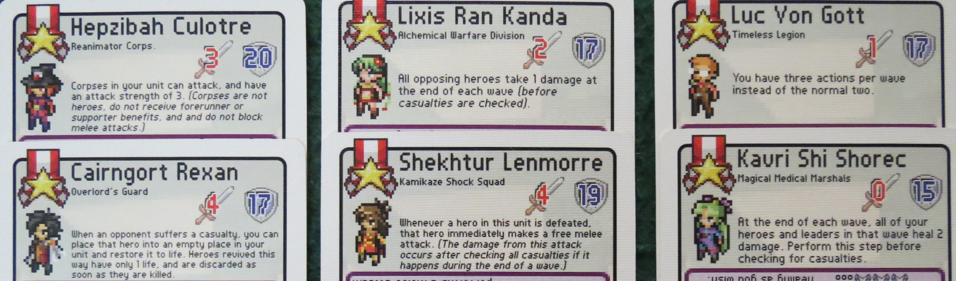 Now let’s flip the cards right side up and take a look at the regular heroes.
