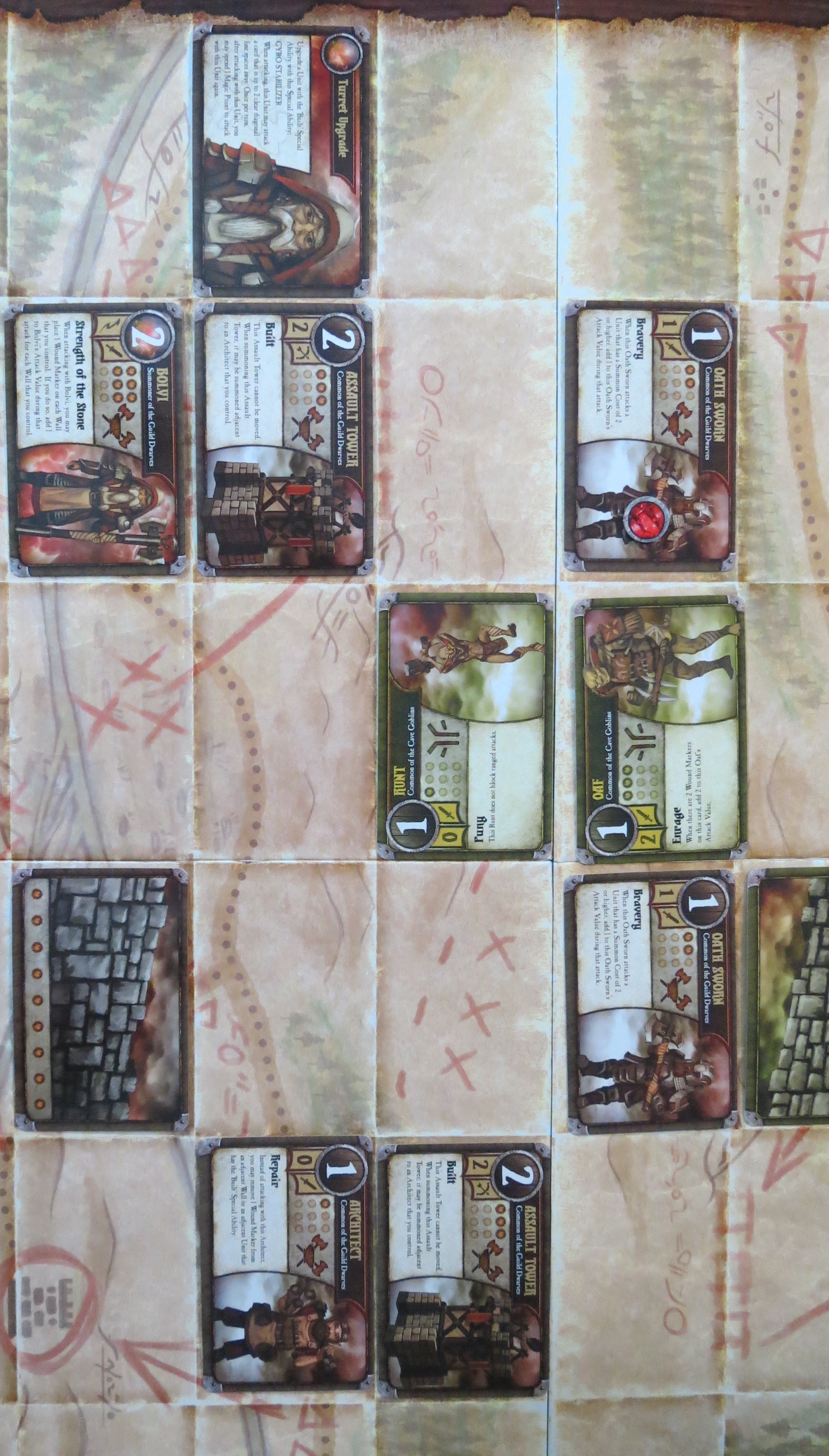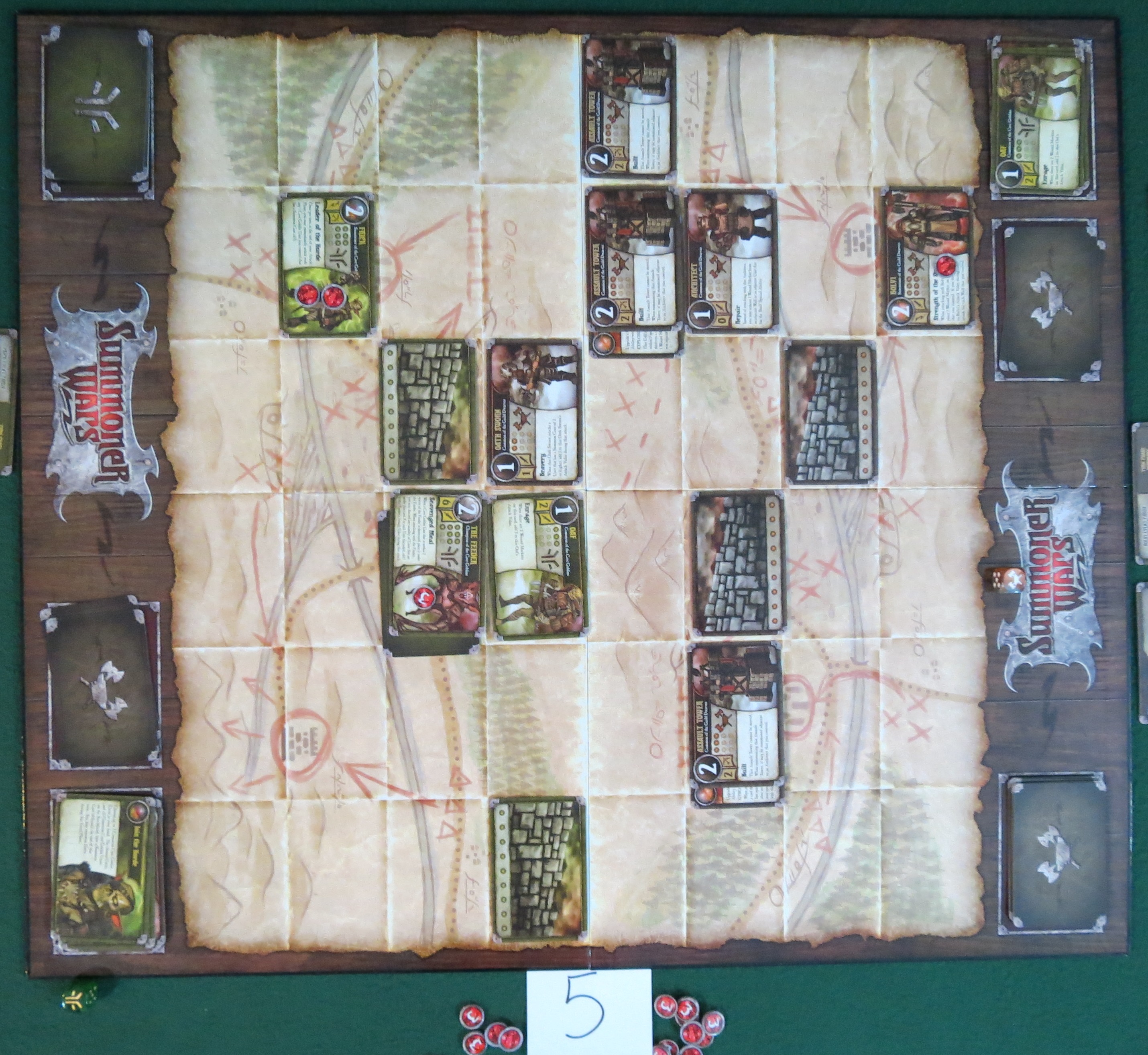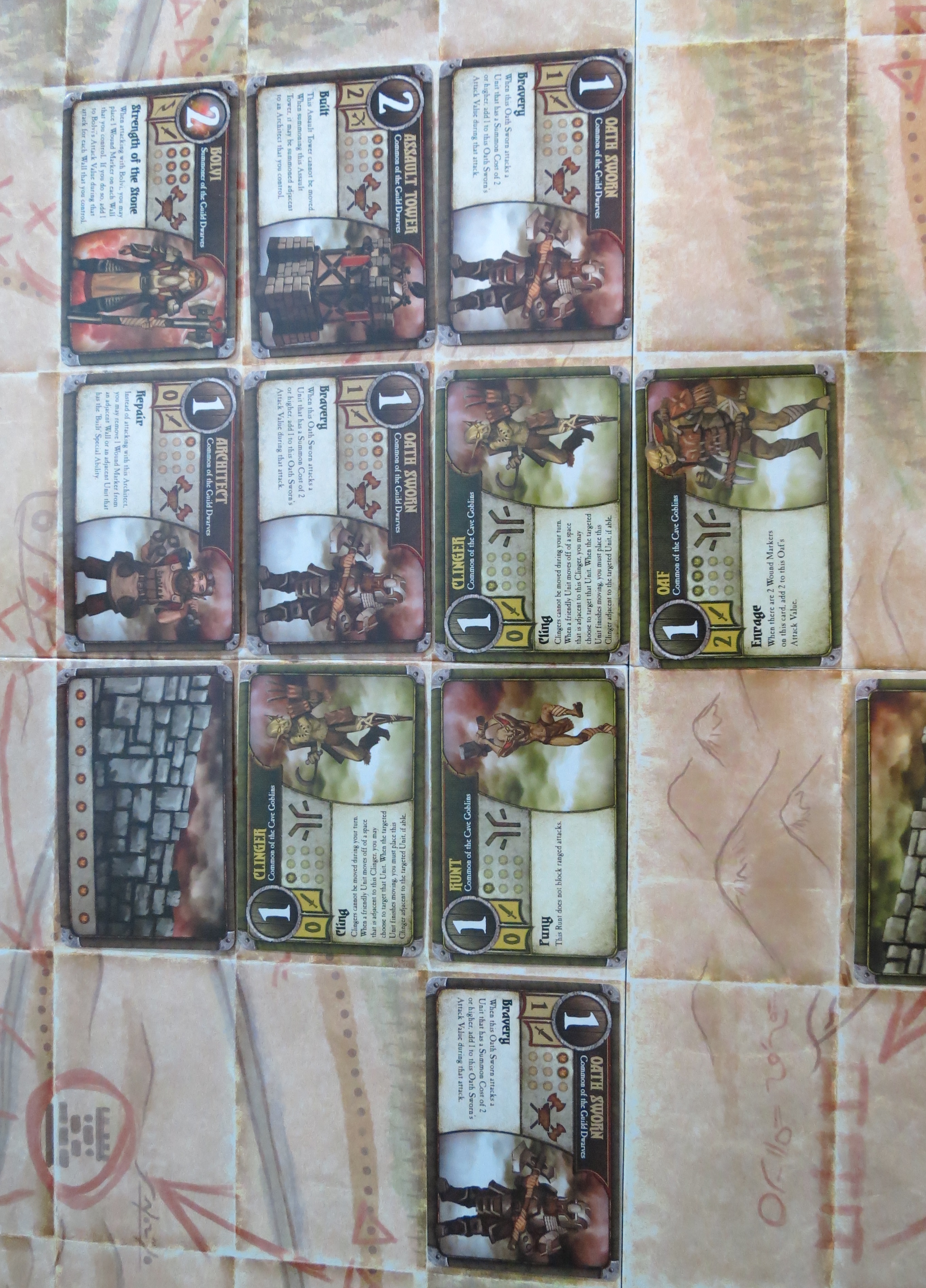 In about a month the first four of the second summoners will be released, which means the second phase of the Summoner Wars is beginning! To celebrate, Somerset and I have set the new Guild Dwarf and Cave Goblin decks against each other. While archenemies Oldin and Sneeks are busy wearing down their forces in frontal assaults, both have thought up a secret flanking maneuver — completely oblivious to the crucial detail that these ill-fated plans traverse the exact same route. And so Frick’s army of war cripples, runts, and braindead goblins has come to crash against Bolvi’s fortified towers and those sworn to defend them to the death. Sounds like a recipe for disaster. Also fun.