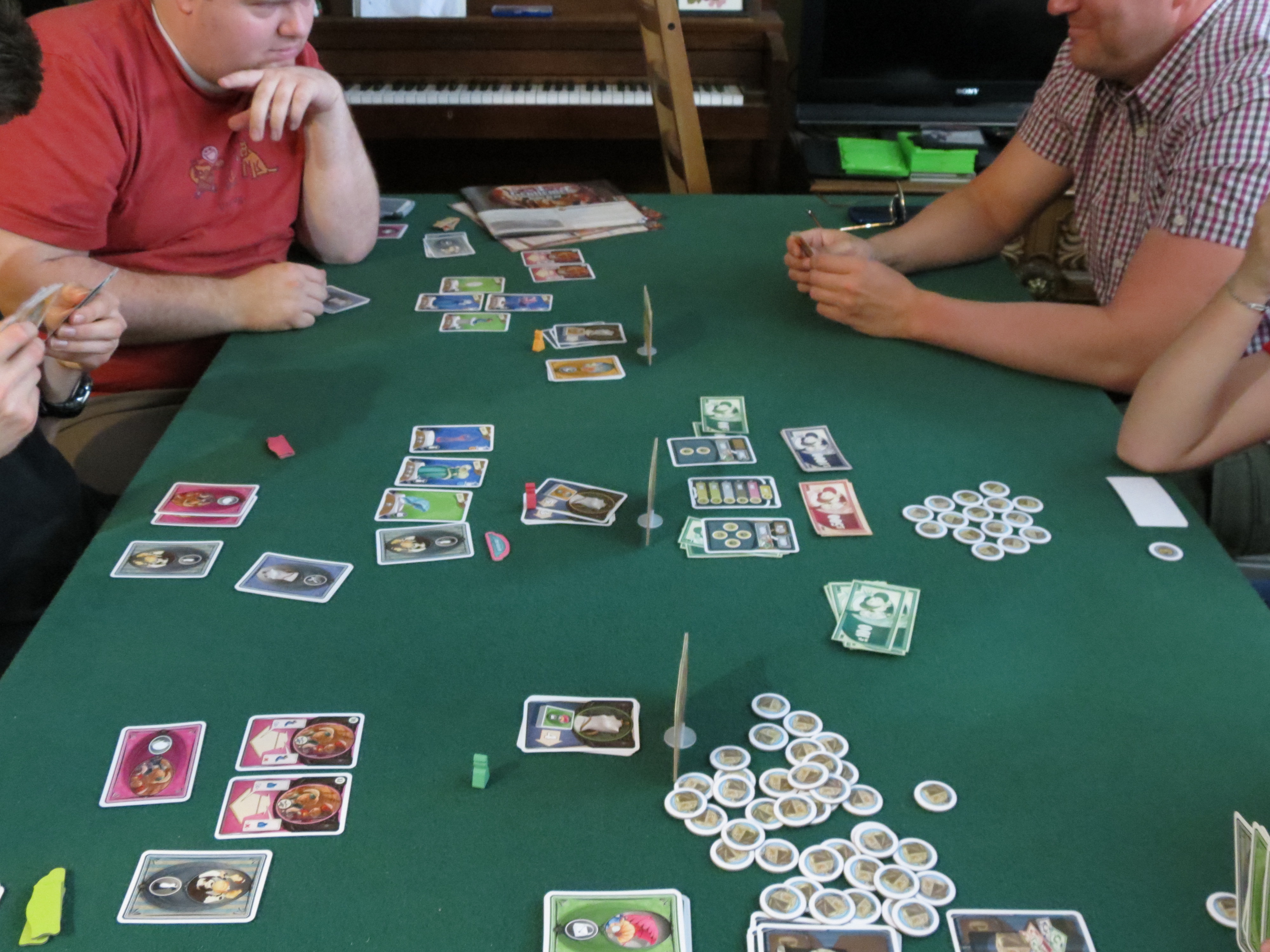 The primary downside is that you’ll need to assemble the right group in order to enjoy it. Players should be willing to talk, and to directly insult each other’s parentage and looks. People who are easily offended shouldn’t be included, and you might be well advised to drop them from your circle of associates anyway. You’ll also need the right quantity of players — too few and there won’t be enough exchanging of gossip and shop-visits, too many and the stock market gets rather crowded with grabbing hands.