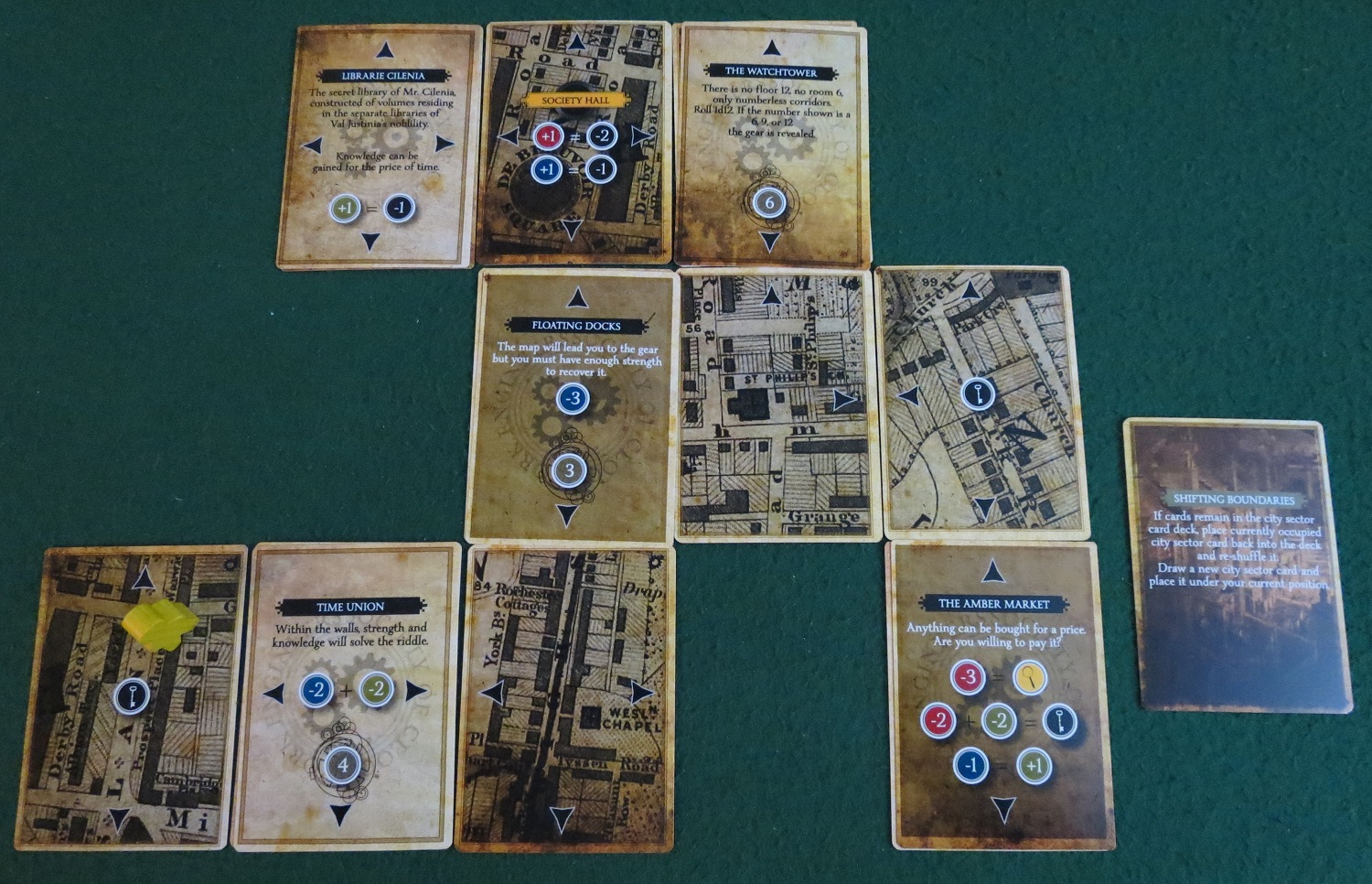 Unfortunately, the second part of the game isn’t quite as refined. The actual search for the circumnavigation artifact feels less imaginative, less thrilling. You’ll discover a place — Revolution Square, for instance — and expend health, or time, or strength, or knowledge, or some combination of these, to acquire one of the device’s components. There’s nothing more to it. The sole challenge comes in the form of two of the game’s resources, your waning health and the time before the clockwork cabal finds the device, the mismanagement of which will result in failure. But health is easily recovered by chilling at the Society Hall for a few hours, and you’ve got a comfortable sixty hours before your enemy decodes the Antikythera’s code, so unless you have a serious run of bad luck, you’re going to beat Clockwork Cabal by a significant margin.
