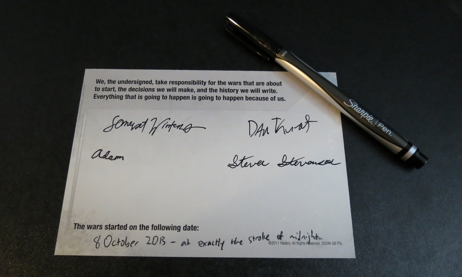 Though be warned: while this first installment won’t spoil anything important, future accounts will chart my group’s course through Risk Legacy’s fifteen successive battles, and may very well become more illuminating than someone looking to experience Risk Legacy for themselves might like. This is a game best experienced firsthand; this series is for everyone else, who knows they won’t get that chance. You’ve been warned.