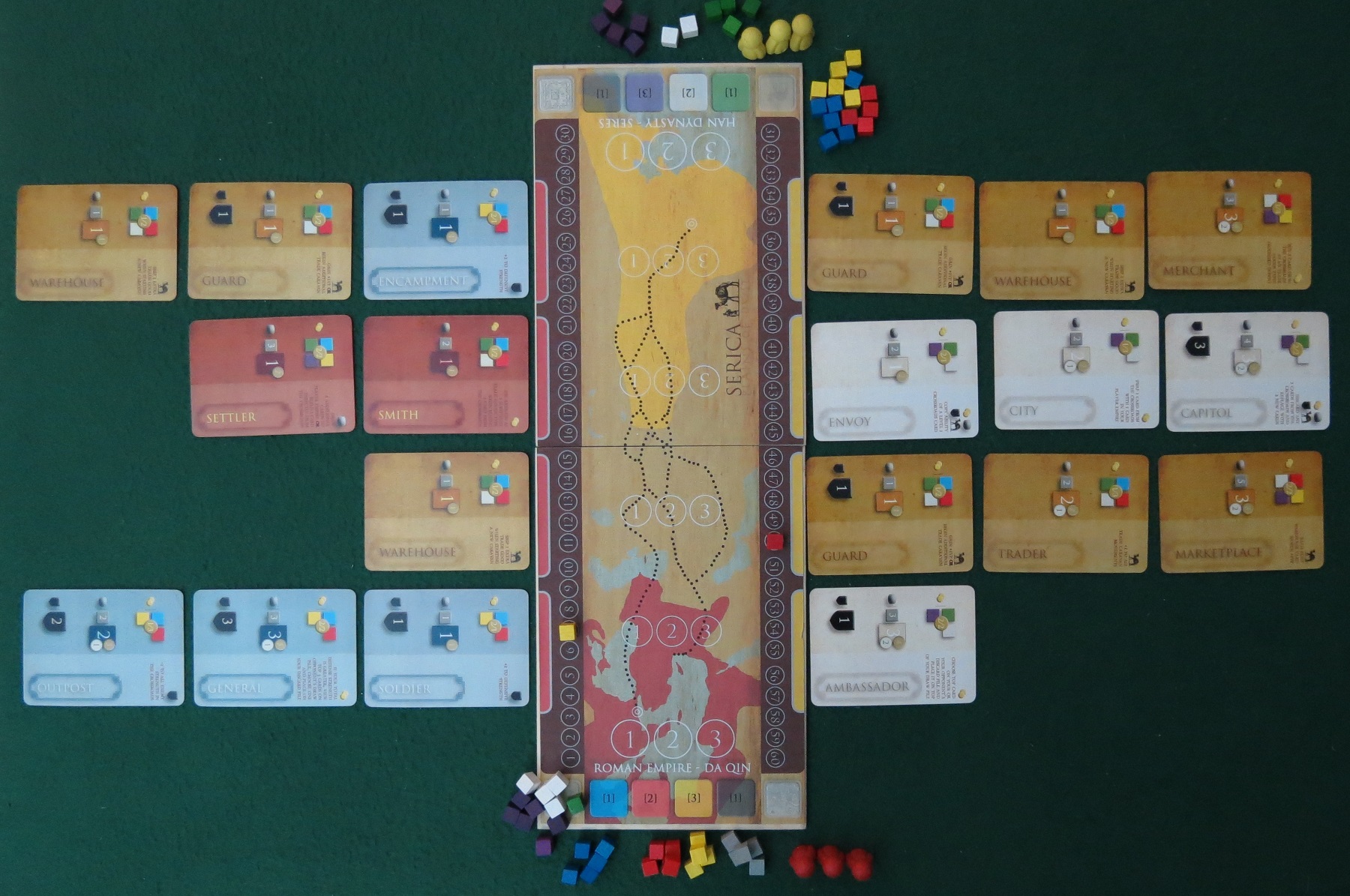 I’ve covered the work of Todd Sanders before — a whole buncha times, in fact — but Serica: Plains of Dust is still one of his more unusual designs. Yes, more unusual than haunted fantasy kingdoms or clockwork airships, Serica is about the famous 4,000 mile Silk Road strung from the Roman Empire to the distant Han Dynasty. It’s also a deck-building game, though being designed by Todd Sanders, you can bet it’s unlike any deck-building game you’ve ever played.