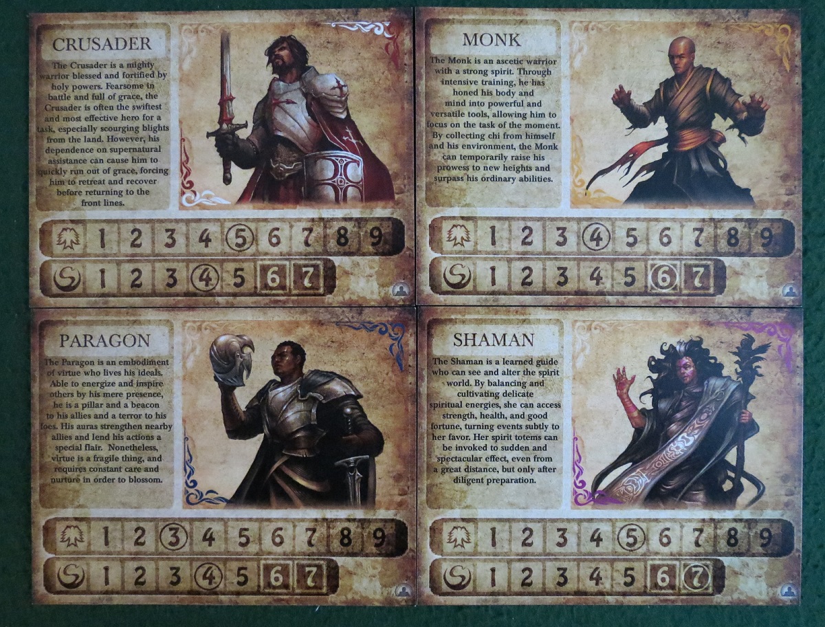 Anyway, the most impressive thing about the new characters — the Crusader, Monk, Paragon, and Shaman — is that they’re completely distinct from the original cast. The Monk, for instance, can supercharge many of his powers into impressive “Chi” forms, such as the “Patience” card that lets him fight with three dice when the Necromancer’s darkness track is on an odd number, with a +1 to his highest die roll in Chi mode. Conditionally awesome! The catch is that you have to use another card to activate Chi, like the “Chi Burst” ability, which exhausts to activate another card’s Chi effect, or “Harness Chi” which activates when you take damage. The result is a character who can hit incredibly hard, travel multiple spaces for free, and elude the Necromancer’s best hunters — provided he manages his Chi properly.