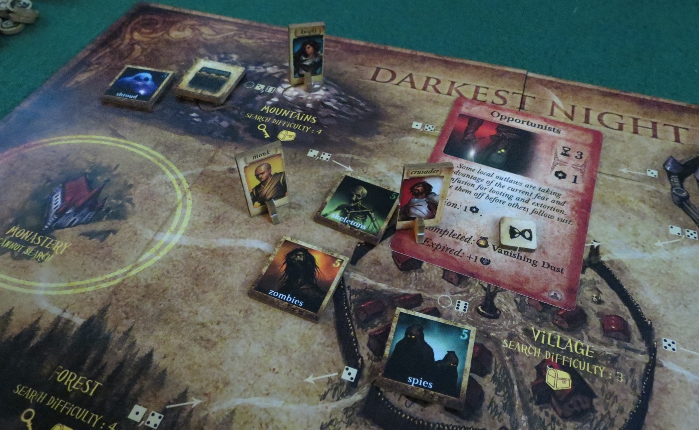 These change the pace of the entire game for the better. Certain (new) events add these to the map at random, providing extra opportunities and dangers on your journey to rid the kingdom of darkness. So while in the past you might have avoided the swamp because it was far away from the sanctuary of the monastery and difficult to search, not to mention your irrational fear of bogs, now there’s the possibility you’ll have to make the trek in order to halt the construction of a threatening dark tower being erected in the midst of the marsh’s stinking morass. Succeed and you can move the darkness track back a little; fail and it jumps forward.