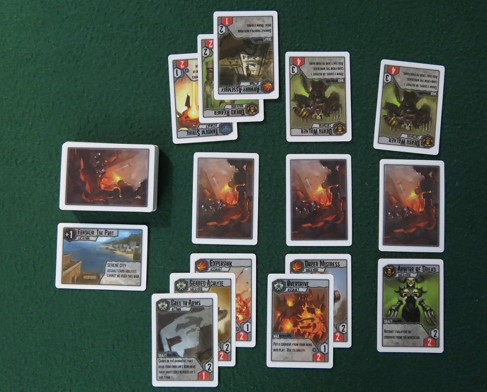 You’ll be drafting a lot. The game kicks off with a drafting phase, and roughly half of each round sees both players drafting even more. It’s a relief then that the stuff you’re drafting is so cool, from war-babe valkyries with game-changing special abilities to “cogdrive” battle-robots and orbital bombardments. Then you send all those nifty cards you’ve drafted into the fray, trumping each other over and over again as your cards stack in mind-bending ways that will have your opponent swearing you’re somehow breaking the rules. At least until it’s his turn and he gets to do the same back to you.