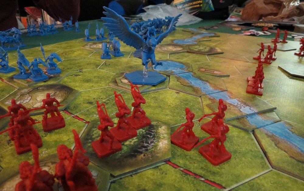 I admit it, I’m a sucker for spectacle. Which isn’t to say BattleLore (Second Edition) is only about the whizbangs, what with its adept use of the “Commands & Colors” battle format, clever scenario generation, smooth translation to the Terrinoth/RuneBound setting, and badass game-altering lore cards. But still, there’s something to be said about how fantastic it looks set up on the table. I’ve had friends who normally can’t stand two-player dueling-type games walk in on an in-progress match of BattleLore, only to gasp and ask if they can play the winner.