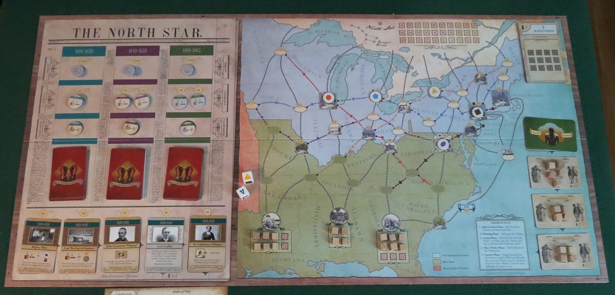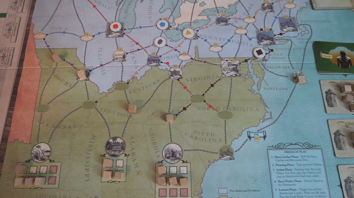 So you’re an abolitionist, an agent of the Underground Railroad. As such, your goal is threefold. First, shepherd a certain number of enslaved families from their plantations in the south past gangs of slave catchers, carefully picking a route through the northern states and into freedom-loving Canada. Second, sway the opinion of US policymakers towards abolition. Be warned, it’s going to cost you. And third, don’t lose too many groups of slaves. Oh, and the game is on an eight-round timer, so you’ve got to accomplish all three objectives with very little margin for error.