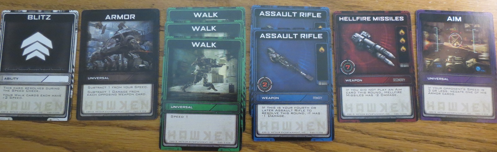 Meanwhile, Cryptozoic Entertainment is still in a whirlwind frenzy of making board games out of licensed properties, including the relatively recent mech-war PC game Hawken. What’s more, in order to capture the frenetic excitement of mech combat (we assume, since nobody’s done it yet; maybe it’s boring), they’ve decided to make it real-time. I know, I was thinking the same thing: huh? Well huh no more, because I’ve got the lowdown on what’s going on with the inspirationally-titled Hawken: Real-Time Card Game.