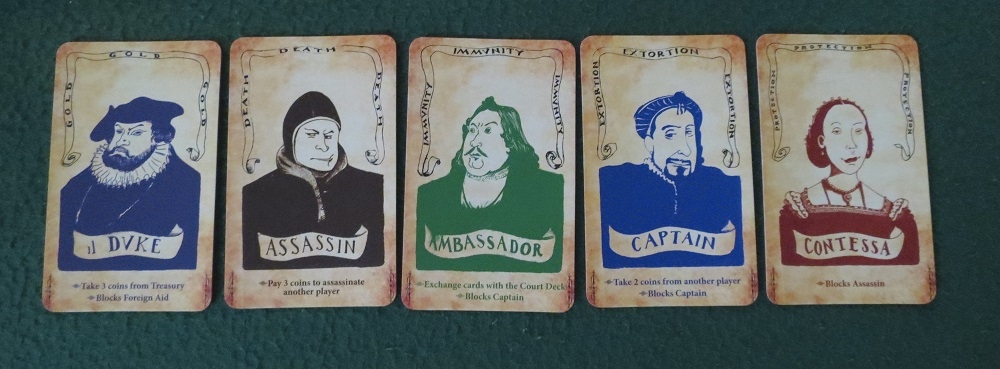 As I checked my two cards, I discovered I was holding an Assassin and an Ambassador. The first was good news flavored with a dash of rotten lemon owing to the fact that I didn’t have a Duke or a Captain to secure any real income, and the second was plain bad news since using an Ambassador to swap out my hand has always rankled as a sort of wasted turn.