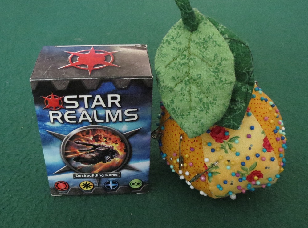 Wow if the reference reference pear is actually the size of a lovesac those safety pins could pin a person to the wall! Star Realms is a great filler game: easy to learn and strategize quick and fun to play. At least with two people. I think we’re getting a couple more decks to try with more people — excited to try it out with a bigger group!