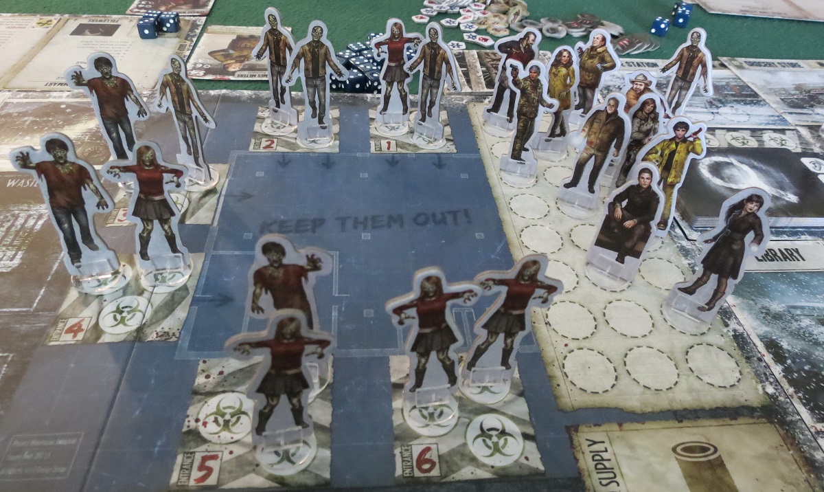 Everyone else is working to help the colony thrive by scavenging for food and medicine, taking care of injuries, building barricades, killing zombies, taking out the trash so you don’t drown in your own filth (really), and contributing to the crisis that appears each round — maybe your food stores are about to spoil, or perhaps a huge blizzard is coming so you need to stockpile extra fuel. Everyone is pitching in.
