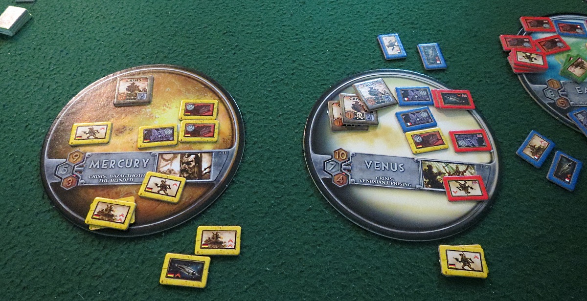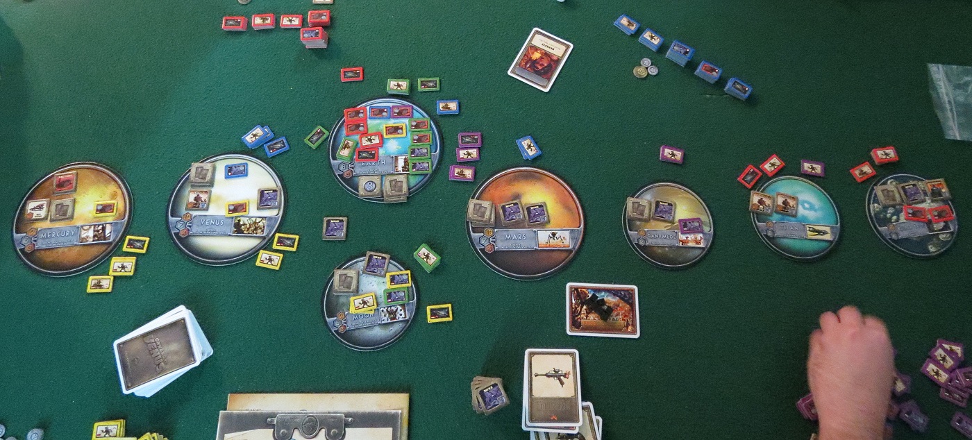 Not that they’ll ever happen. Or if one does, it’ll probably just be Bazagthoth the Blinded, offering his lame mercenary services from Mercury. In fact, the few times my group saw events trigger was only because we were curious what they would do. I’ve heard tell that they occur more often in games with fewer players, since that means fewer empires suppressing them, but because Onward to Venus is at its best when it’s crowded with empires clamoring to capitalize on the Solar System’s limited opportunities, I see little reason to play that way.