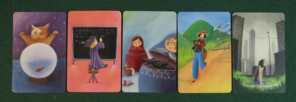 You’ve probably guessed that you’re trying to get the other players to pick your card off the strength of your hint, but here’s what makes Dixit tick. If it were as simple as getting people to choose your card, it would have been easy enough to say something obvious like, “It’s a wolf looking out of a Russian nesting doll,” and then Dixit would have been the dullest game in human history other than Uno. Instead, it’s your goal to get someone to pick your card, while if everyone — or no one! — picks it, then you get zero points. What’s more, every other player gets a point when someone picks their card, like a little usurper slipped into the lineup. A masochist usurper, desperate to be fingered for a crime committed by someone else. Or something. I’m pretty sure it’s on a Dixit card.