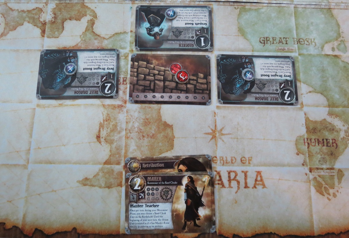 Life is good when you’re a Sand Cloak. Everything is an opportunity. You’ve got a deck full of “Event Abilities,” which slide under your soldiers and give them extra powers, not to mention a summoner named Marek who likes to share whichever ability you’ve given her. You’ve also got some cool troops out there — a Tinkerer who cancels enemy tricks, a pair of goblin Scholars who can juggle those Event Abilities of yours, and a Hunter who shares his abilities with everyone else in his pack… though since there’s only one Hunter, it’s not much of a pack. Not yet.