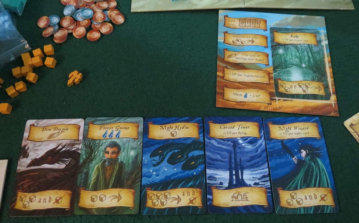 There are some that give you new ways to gain points, like how the Cursed Hag makes cards with the elixir symbol worthwhile even if you don’t score the bonus by having the most of them at the end of the game, or how the Hogman makes controlled islands even more valuable, or how many of the new cards are adorned with banner symbols so the Princess and Mountain Bridge can award points and gold for collecting them. And for those who love to gain their points by collecting sets, the Shapeshifter fits into any set of your choosing. Meanwhile, the Ancient Chimera lets you move a pair of armies when the game ends, giving you one last chance to rearrange your forces before scoring. And for those who were frustrated by the original game’s immovable cities, the Night Worm can wipe them off the board while the Arcane Earth-Shifter walks them all over the place. There’s even a University that gives you cash when someone else builds a city, just to be a dick.
