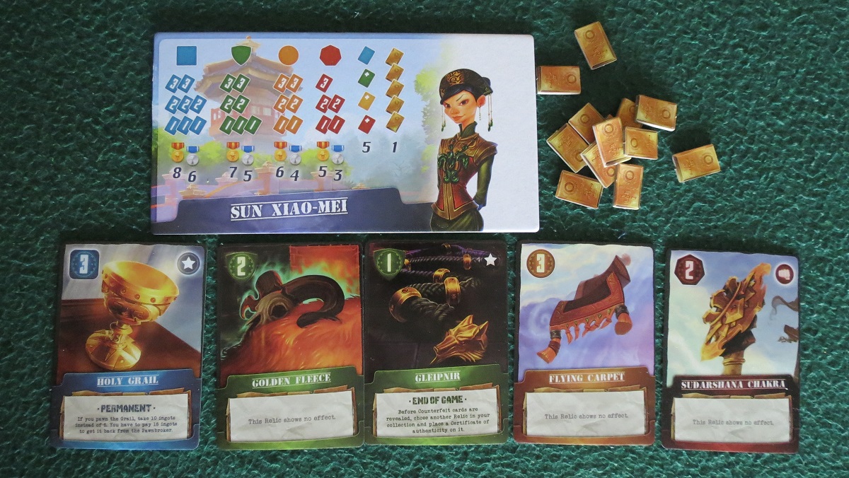 As a game, Warehouse 51 couldn’t be simpler. Everybody starts with a stack of 10 gold bars — each worth a billion dollars, we’re assured — and one by one various mythological items are unveiled and offered for sale. Every so often you’ll be subjected to a blind bid, where players hold their bid in closed fists, but most of the time these are honest to goodness open auctions, complete with the ability to drive the price up, sell a stinker by backing out of a bidding war unexpectedly, or complain about the game’s weird cash system.