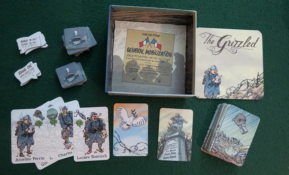 The connection between the two comes in the form of a card game. The Grizzled (or Les Poilus, if you speak French) was illustrated by the late Bernard Verlhac, and portrays a group of inseparable young friends thrust into hell itself. Mobilized in 1914, they’re less concerned with the grand sweep of the war, or taking possession of the next row of trenches, or which royal family rises to the top of the devastated heap. Rather, their only goal is to help each other survive. To endure gas attacks, mortar shellings, the murderous cold of winter and the impenetrable dark of night, to lend a hand when someone loses their nerve or gets hurt. As best of friends, they survive or die together.