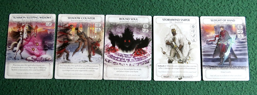 The problem with SW, however, was that it was slightly broken from the outset, with two overpowered initial factions that were never quite brought to heel. Those, and some later additions, were a slog to duel, and they had a diminishing effect whenever they appeared on the table. I’m convinced (though I could be wrong) that Ashes is off to a better start, but its longevity will depend on whether it’s fully supported by Plaid Hat and — crucially — whether it receives proper adjustment to over- or underpowered cards, combos, or Phoenixborn in the future. Plaid Hat stated early on for Summoner Wars that it wasn’t going to make any adjustments to existing factions (and in fairness they were a small company and didn’t want to split their player base), but a tweak to two or three sets might have fixed innumerable problems down the line.