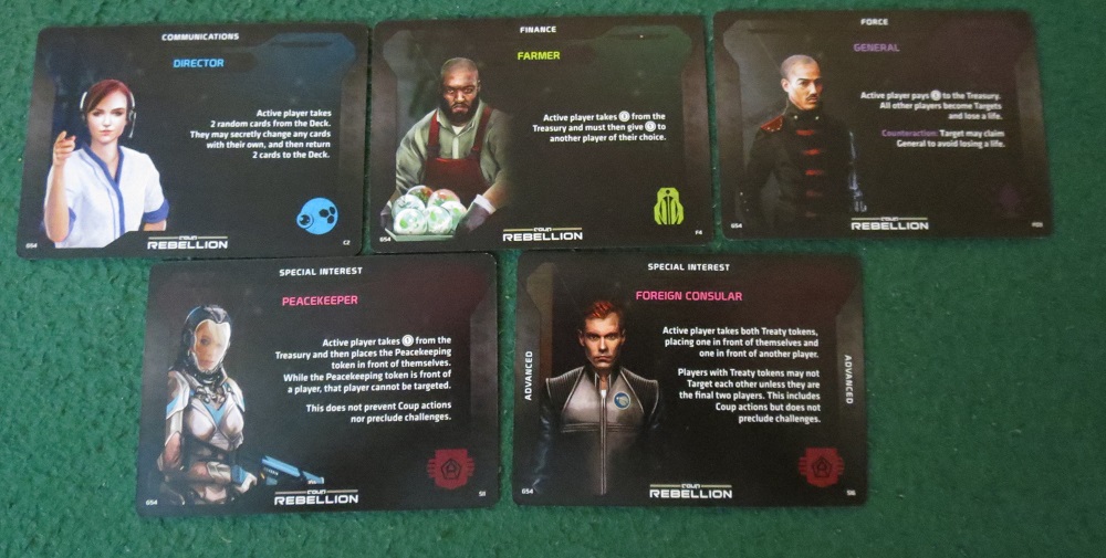 Not that you’ll have to remember twenty-five actions at any given time — plus, of course, the basic Income and Coup actions that are always available to anyone. The beauty of Coup G54 is the way each setup creates an entirely distinct experience, assembling five different characters whose actions you’ll be lying about. These are broken into four broad categories to ensure a balanced experience, so there will always be a Communications role (for swapping out cards), Finance (to gain credits), Force (to hurt other players), and a pair of Special Interests — which do all sorts of crazy things. It goes without saying that the combination of roles makes for an entirely different game each time. Even the setup feels uncommonly involved, with everyone mulling over the possible uses of each character as they’re revealed. “Aha, so the Banker and the Judge are out,” you might think. “That means people will have easy access to money, and the act of hurting somebody gives them more. Which makes it more likely that if I hurt someone directly, they’ll have enough money to hurt me back. But not if I use the Foreign Consular to establish a treaty between us before they can retaliate…”