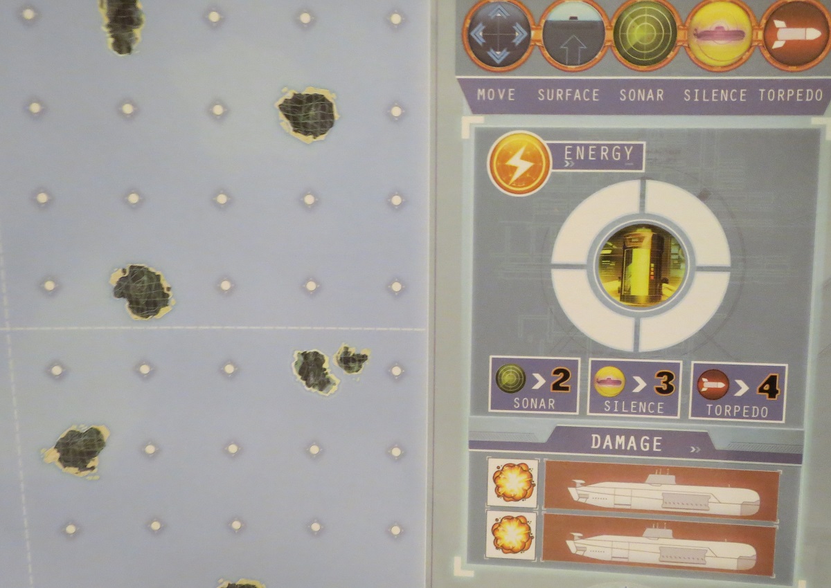 The actions, energy, and damage meters.