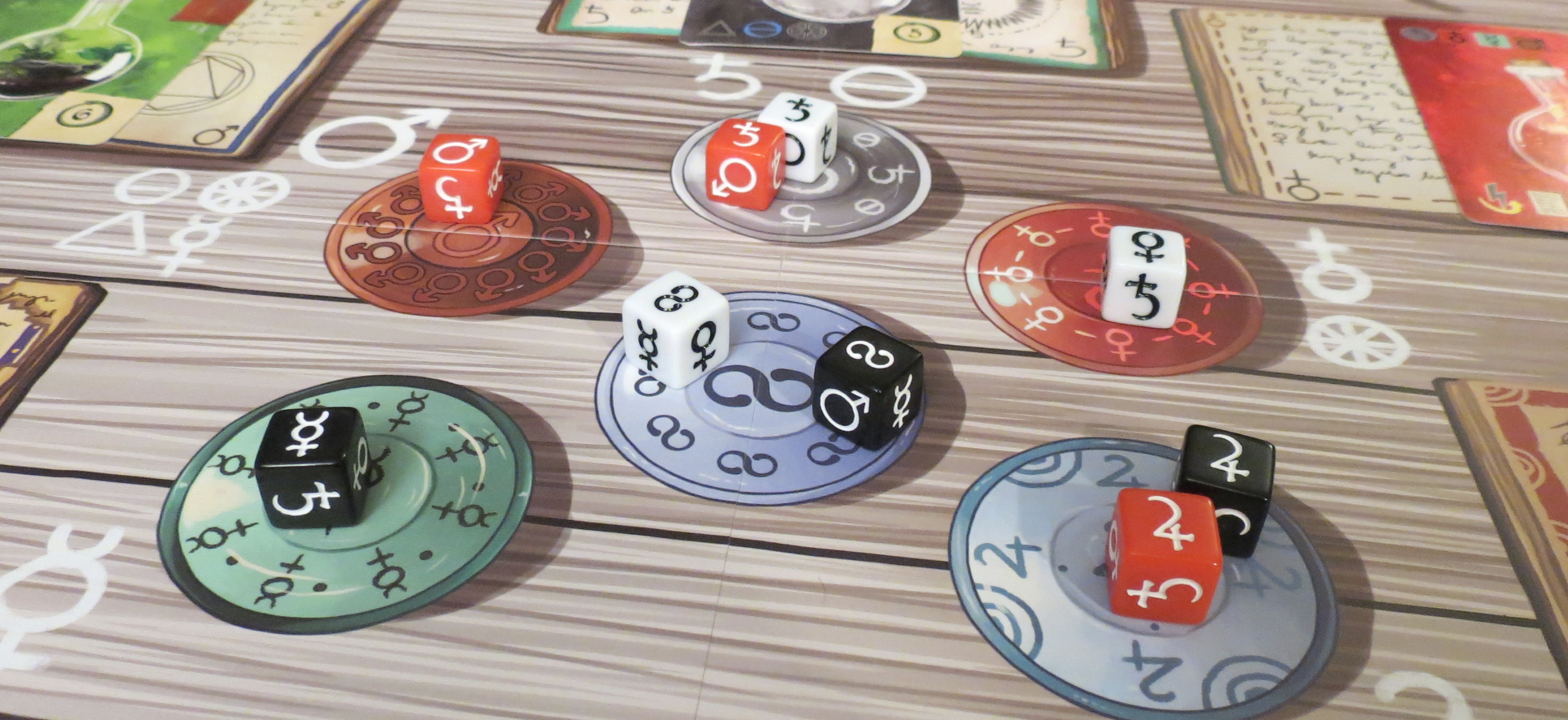 Both the symbols and the colors of the dice are important.