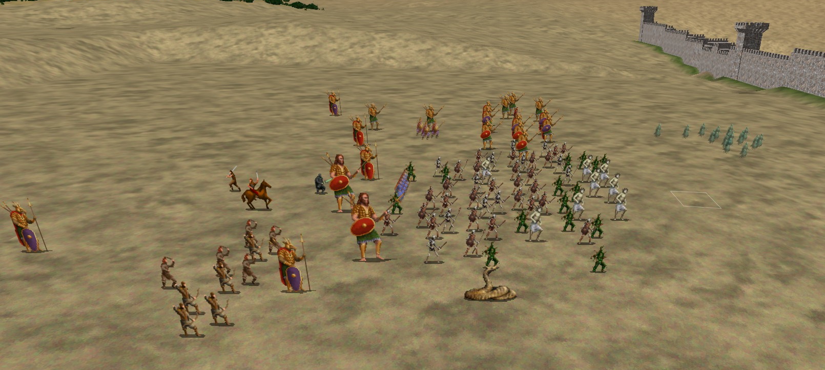 More importantly, note how these two armies have leaned into each other. Fomoria’s fodder is spent and Abysia will soon be running down a rout. They also stationed themselves too closely to the militia they hired, and now their own auxiliaries are going up like struck matchsticks. Whoops. Over the next few in-game years, both armies will refine their approach. The Fomorians will fight with spears and slings to beat the heat. The Abysians will stop positioning themselves directly next to their fleshier allies. Those counter-tactics will be adapted to with further counters. Again the wheel turns.