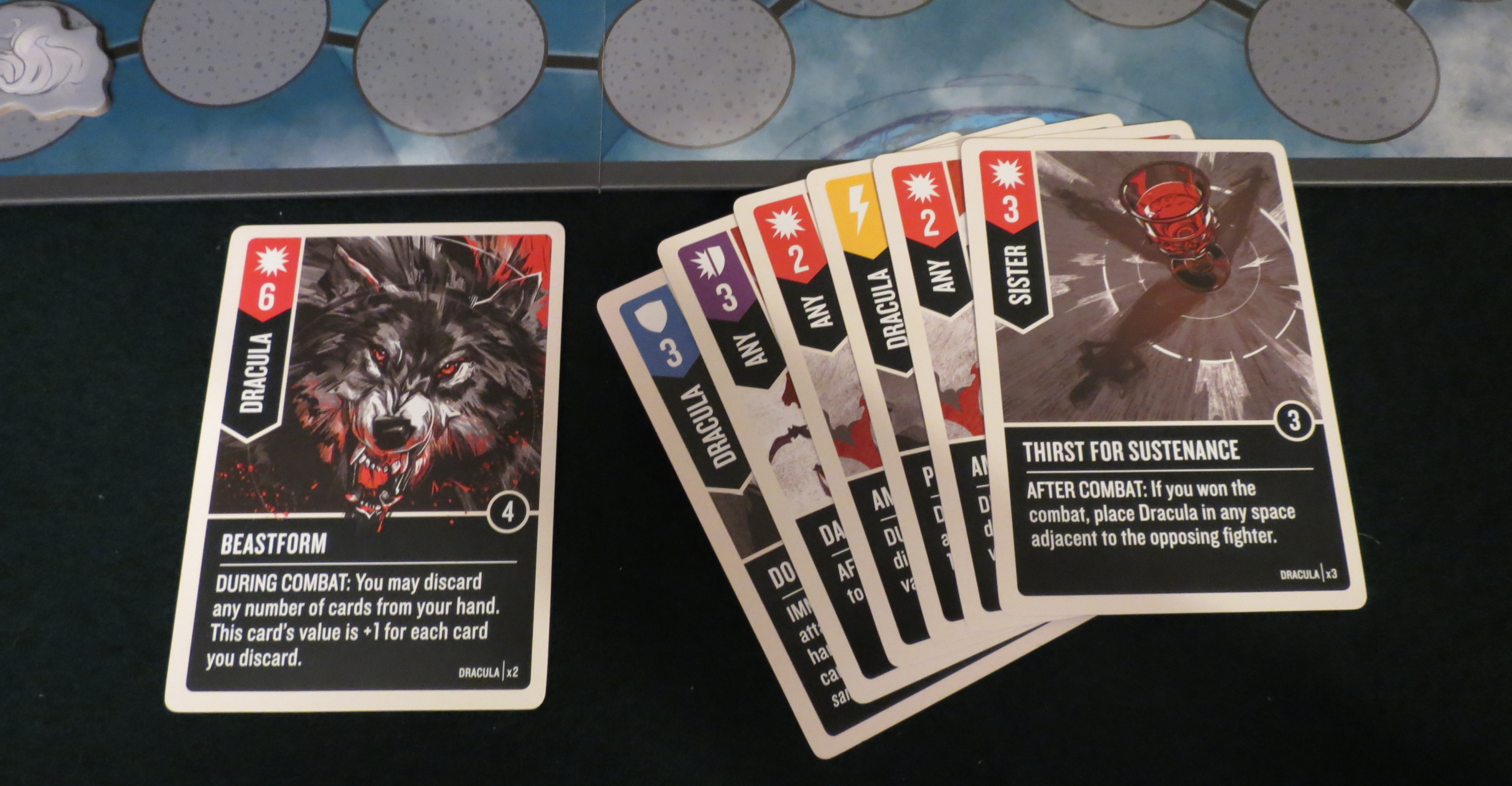This attention to detail — or more, this genuine affection for source material — extends to Cobble & Fog’s other three characters as well. At times, the designers exhibit remarkable restraint, as with the Invisible Man’s fog tokens. These begin on the board at the start of the match and can shift according to card effects. What’s more, he can functionally teleport between them. Between that and his tendency to launch surprise attacks, the Invisible Man is slipperier than oil. You’ll chase him down, take a punch in the nose, and watch him dissolve into thin air. Victory means managing his fog tokens by blocking them with minions or corralling them into proximity. This is far easier to manage than any number of rules-heavy alternatives would have been — say, using face-down tokens to denote his location — while still getting across the feel of boxing with someone who’s seemingly everywhere and nowhere at once.
