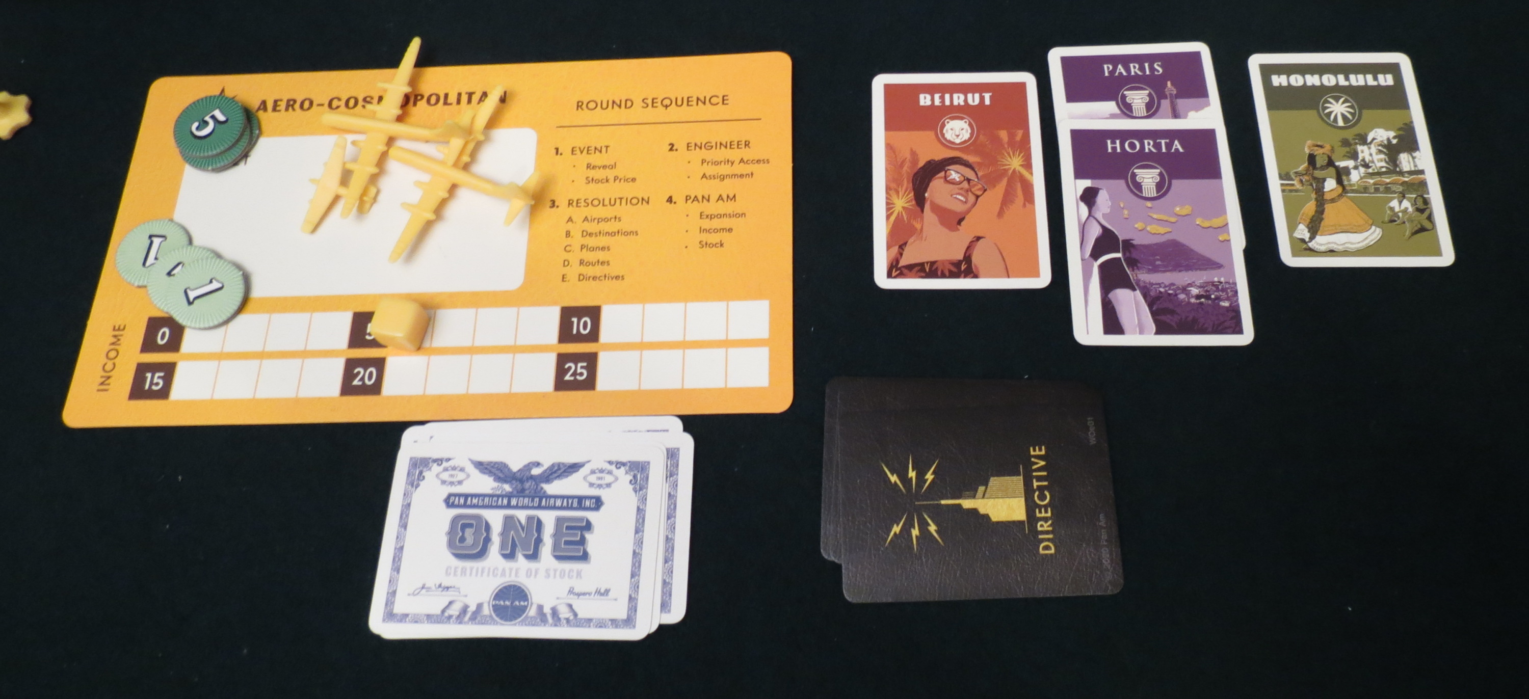 What’s the purpose of cash? Stocks. Pan Am stocks. In practice, Pan Am isn’t much of a stock management game, since your portfolio is expressly limited to the big guy. Your own company doesn’t bother to issue stock, so there’s none of the bidding in rival companies that’s common to the genre. If anything, the game’s stocks function much like a variable-cost victory points. As the fourth phase concludes, everybody is given the option to buy shares. This forces you onto a tightrope between spending too little and not having enough of a share in Pan Am at the end of the game, or spending too much and not being able to grow your own airline in order to afford additional stocks. It’s a fantastic trade-off, and has rippling consequences as some players take advantage of price drops only to find themselves skint when it comes time to pony up for all the stuff needed to operate an airline.