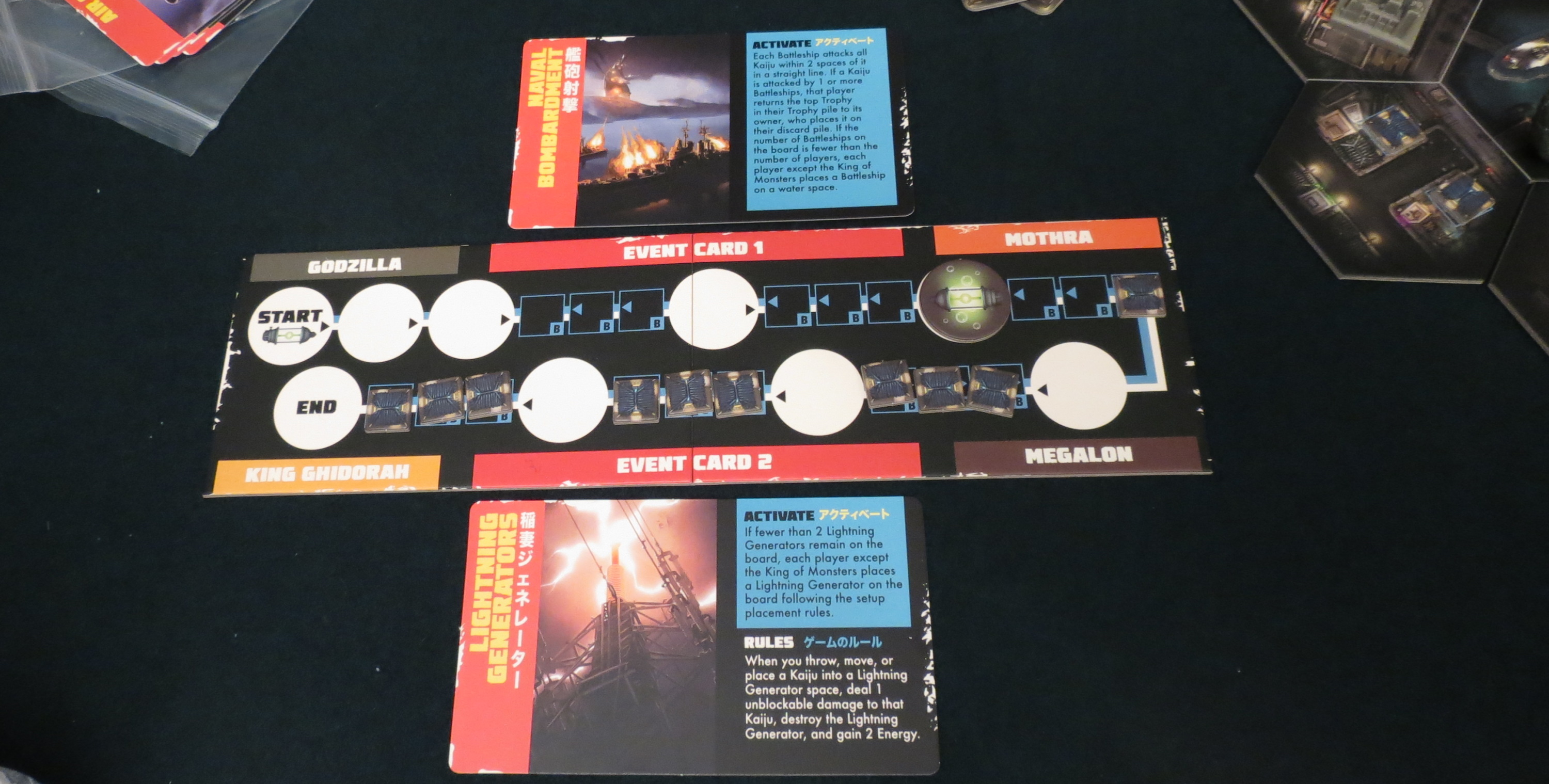 This sluggishness is exacerbated by other factors, from the game’s elongated duration to the fuzziness of its rules. What counts as an attack — an attack card, a thrown vehicle, two monsters colliding, and/or a direct damage card effect? Mothra is immune to tanks, but do they still move in its direction? A round concludes when everybody passes, at which point the human inhabitants of Tokyo get their say with a pair of event cards. Some of these represent counterattacks, as with air strikes, alien invasions, or naval bombardments. These efforts also place new vehicles on the map, and therefore function primarily like reloading a gun that happens to nip your finger. Other events mainly present opportunities, placing trains or lightning generators to shove rival monsters into. In many cases, vehicles are required to move in the direction of the nearest monster, with ties being broken by the current “king.” But what if the king isn’t involved in the tie? What if the king is standing directly behind the tied monsters, equidistant and nullifying its tiebreaker rule? These and other questions are left unanswered, an oddity coming from Prospero Hall.