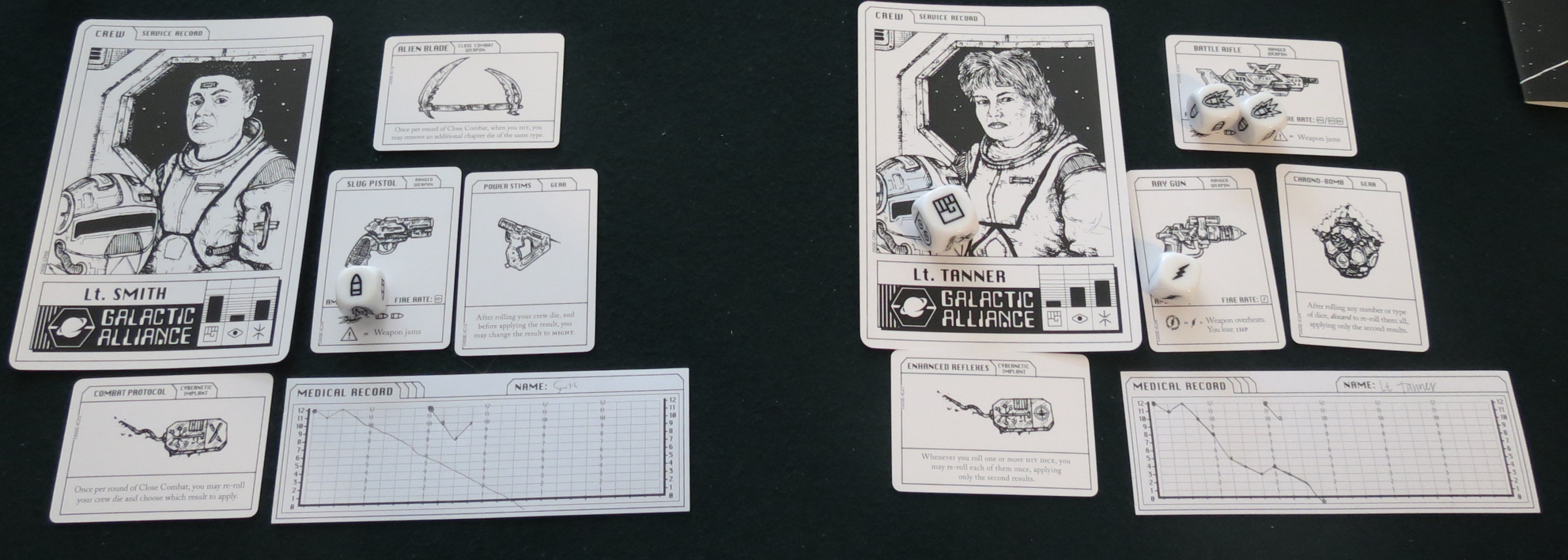Combat is more innovative. For one thing, it’s split into two separate systems layered over the top of each other. Ranged combat comes first if it happens at all, and is usually brisk and brutal. Each player rolls whatever ammunition dice they’re expending, plus another roll for the enemy’s incoming fire. This does a surprisingly good job of evoking a two-way blister of projectiles and energy bolts, while also allowing the occasional tactical breadth for a flanking maneuver. Then there’s melee combat, more measured and precise, usually spanning two or more rounds. Both share the same goal of whittling away the enemy’s pool of dice, while featuring their own options and mitigations. Ranged hits, for example, can peel away any enemy die you want. Close combat goes the other way, using your character’s personal die to hopefully match your foe’s remaining hit points, but letting players switch off for a breather or swarm your target all at once.