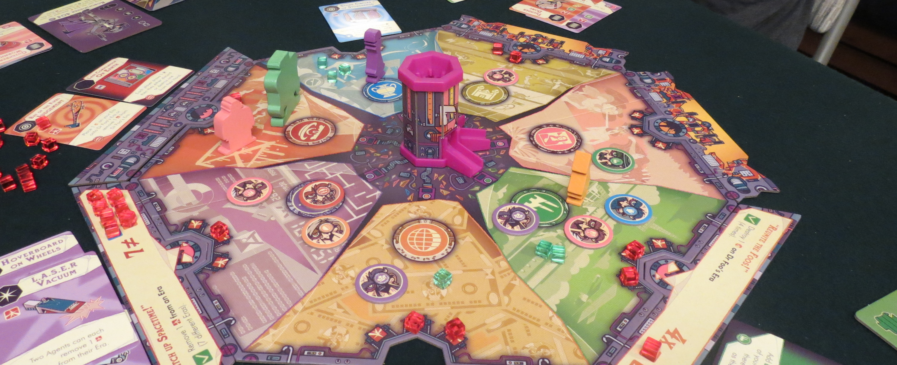 What makes this hum like a well-tuned flux capacitor is the constant trade-offs it presents. First there’s energy. There’s no reason you can’t loop your cards multiple times, but each loop costs one more energy cube than the loop before. This is the same energy you use for traveling; expend too much and you could find yourself stranded in the wrong time. Meanwhile, there are challenges all over the place. Damage to repair. Rifts to avoid. Dr. Foo’s duplicates to murder. Objectives to complete. Energy cubes to distribute. Specific cards you want to pick up. Preparations for your next turn. Allies needing assistance. If anything, looping can be something of a siren’s call, tempting you to make ever more complex moves rather than the best move. And why not? Using energy to bound between eras, looping the same cards over and over again, banishing Dr. Foos and fulfilling objectives — big turns aren’t only time-consuming, they also feel utterly brilliant, making you the temporary star of the table. Just ignore the stifled yawns as everybody else awaits their own chance to shine. They’re only yawning because it’s late, not because you’re hogging the limelight.