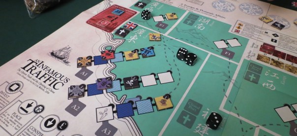 Yet for all their similarities, there are crucial differences between them. And more than differences, divergent focuses that cohere to make a single statement. In a sense both games are strengthened through a paratextual reading: An Infamous Traffic says one thing, John Company says another, but when placed in parallel they speak together to form a statement that’s more than the sum of their (already quite coherent) parts. One might say they harmonize into a single board gaming diptych.